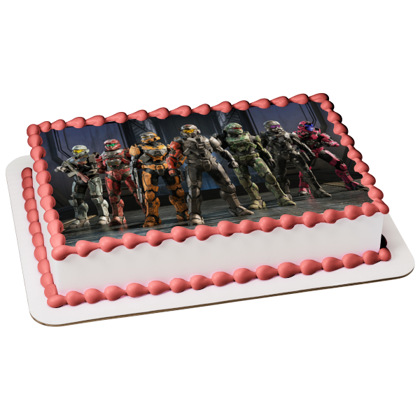 Decorate your Cake with this Halo Infinite themed Edible Cake Topper Image featuring Master Chief and Others!
