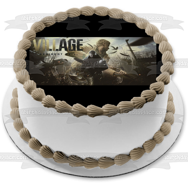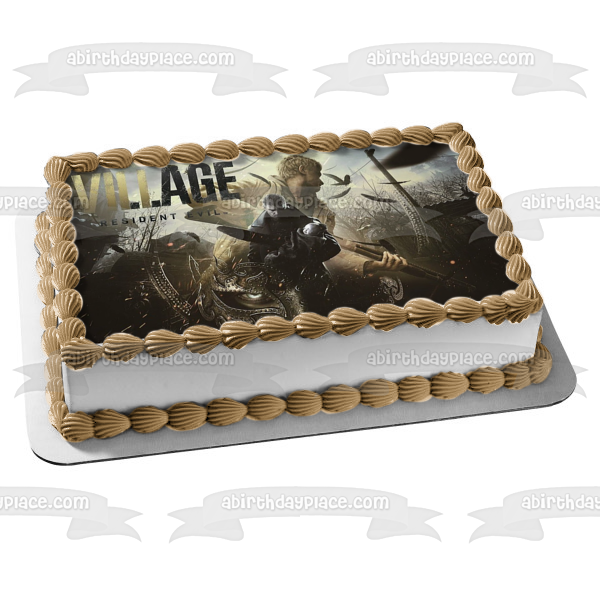 Decorate your Cake with this Village Resident Evil themed Edible Cake Topper Image featuring Ethan Winters!