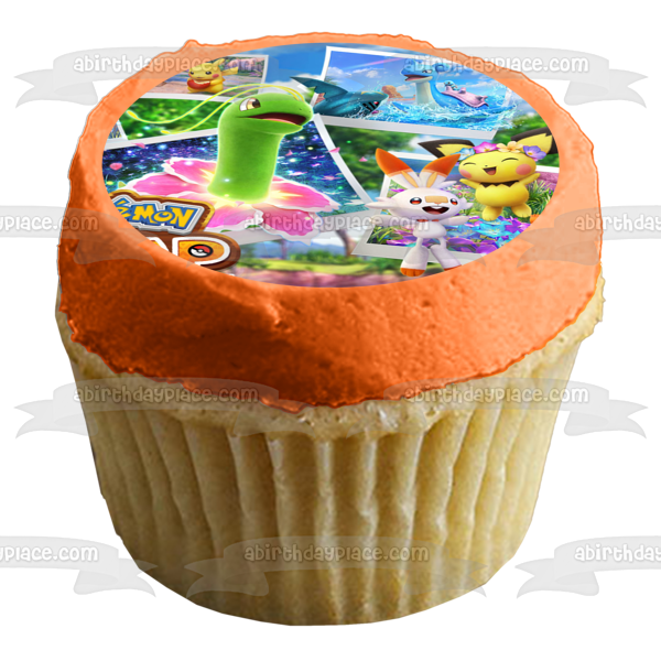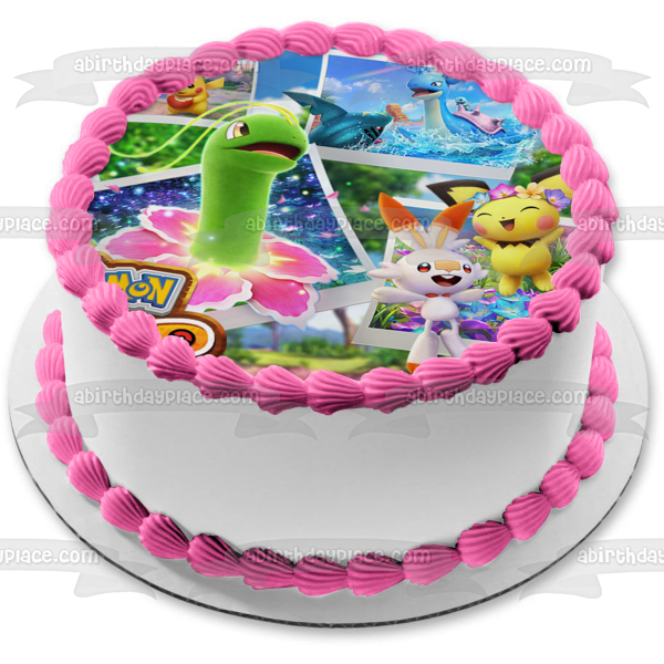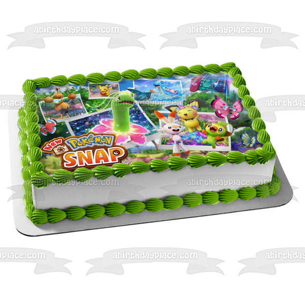 Decorate your Cake with this Pokemon Snap themed Edible Cake Topper Image featuring Assorted Pokemon!