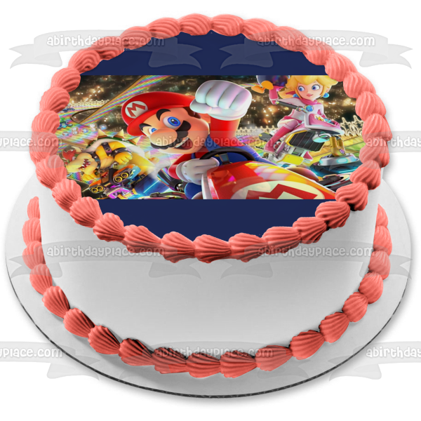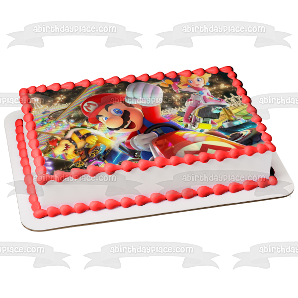 Mario Kart 8 Bowser Princess Peach Edible Cake Topper Image ABPID55445