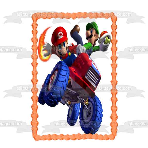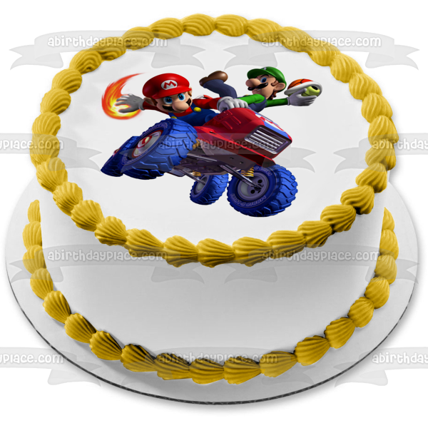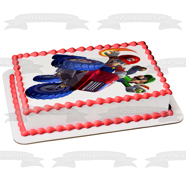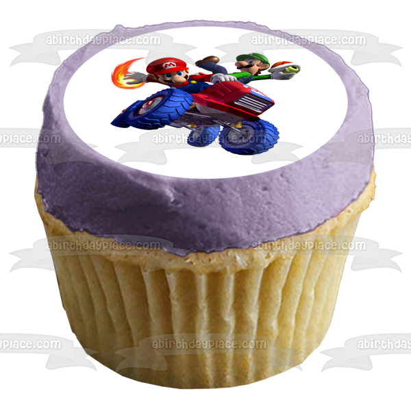 Decorate your Cake with this Mario Kart 8 themed Edible Cake Topper Image featuring Luigi and Mario!