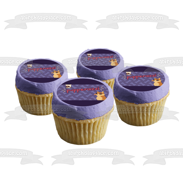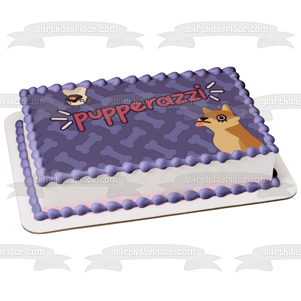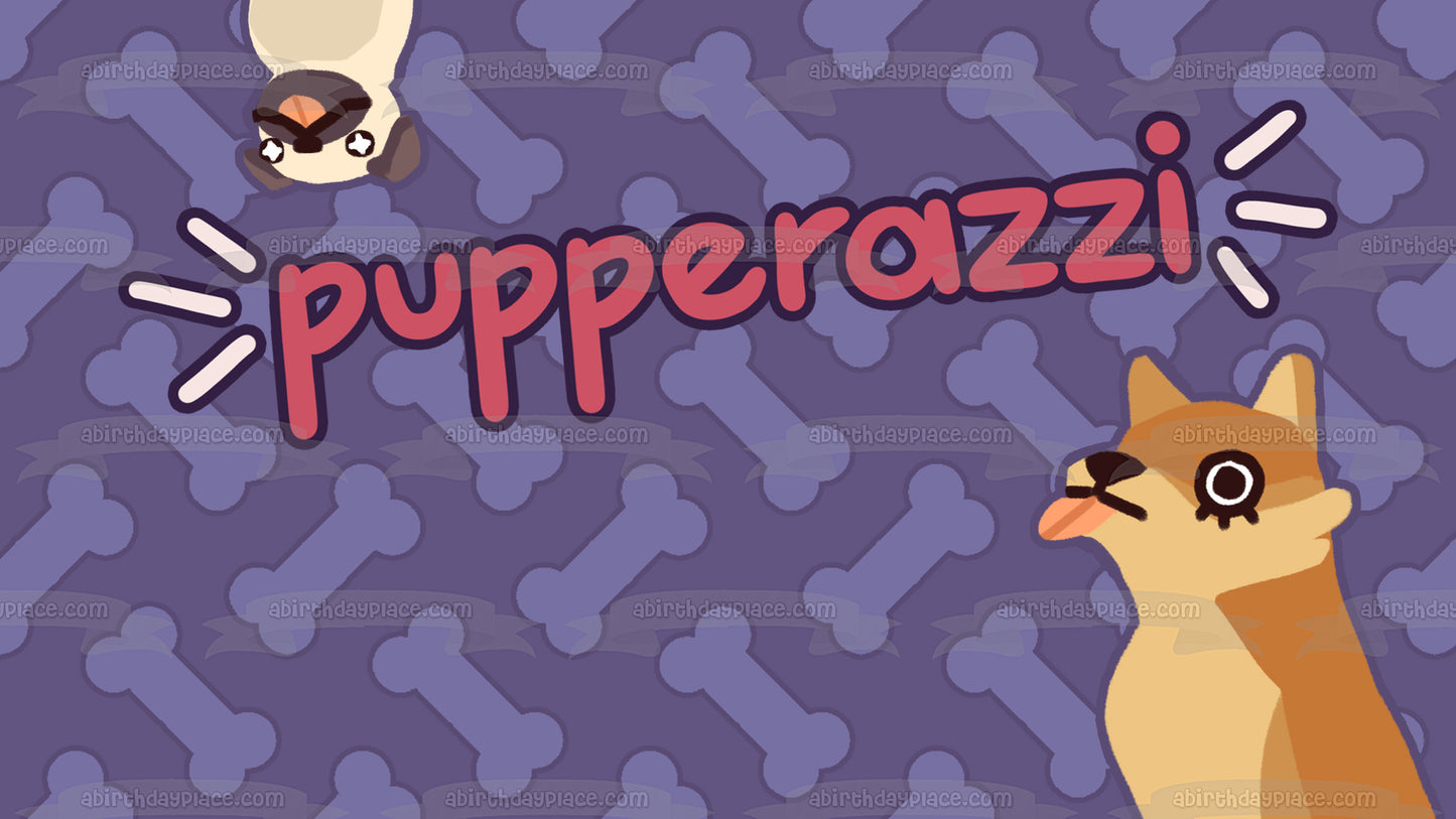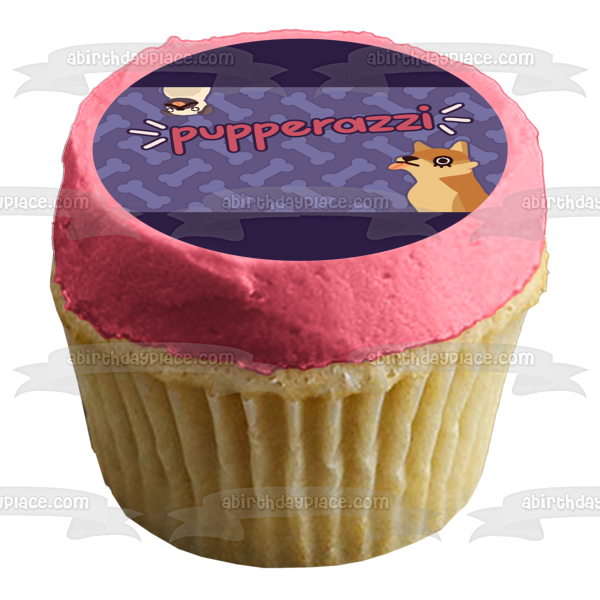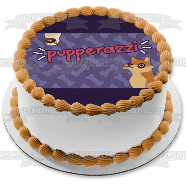 Decorate your Cake with this Pupperazzi themed Edible Cake Topper Image featuring Two Dogs and Dog Bones!