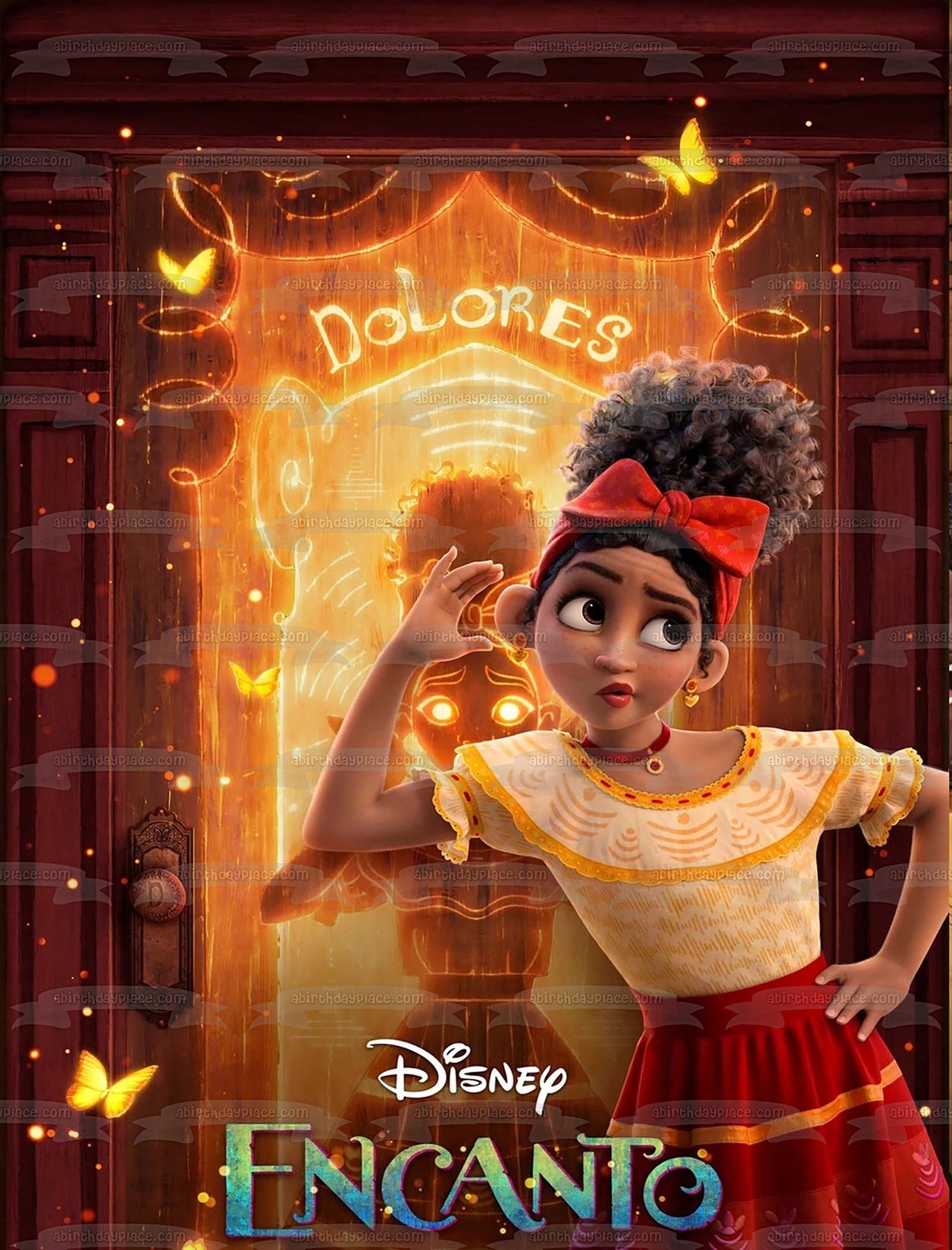 Decorate your Cake with this Disney Encanto themed Edible Cake Topper Image featuring Dolores!