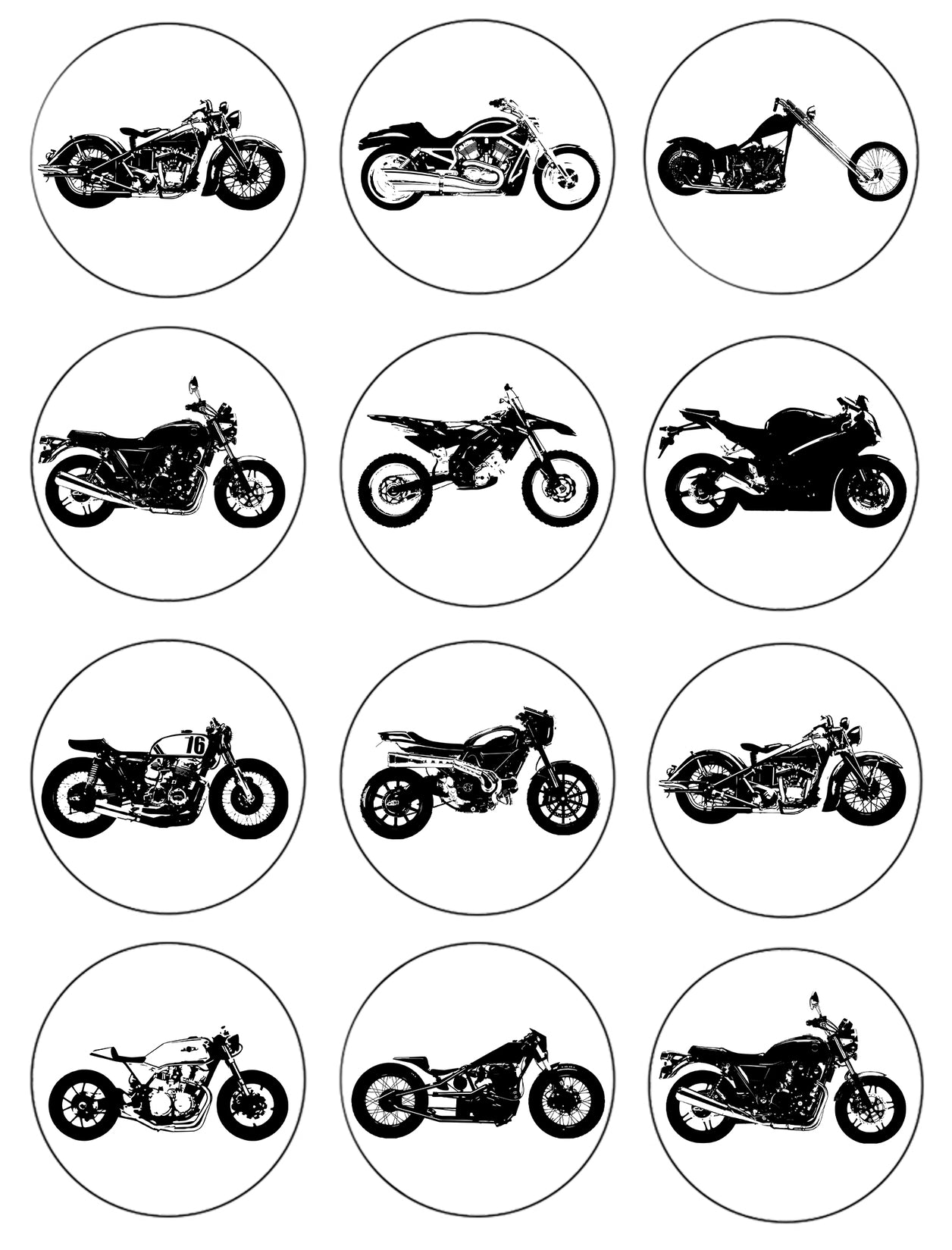 Decorate your Cupcakes with these 12 Count Vintage Motorcycle Silhouettes themed Edible Cupcake Topper Images!