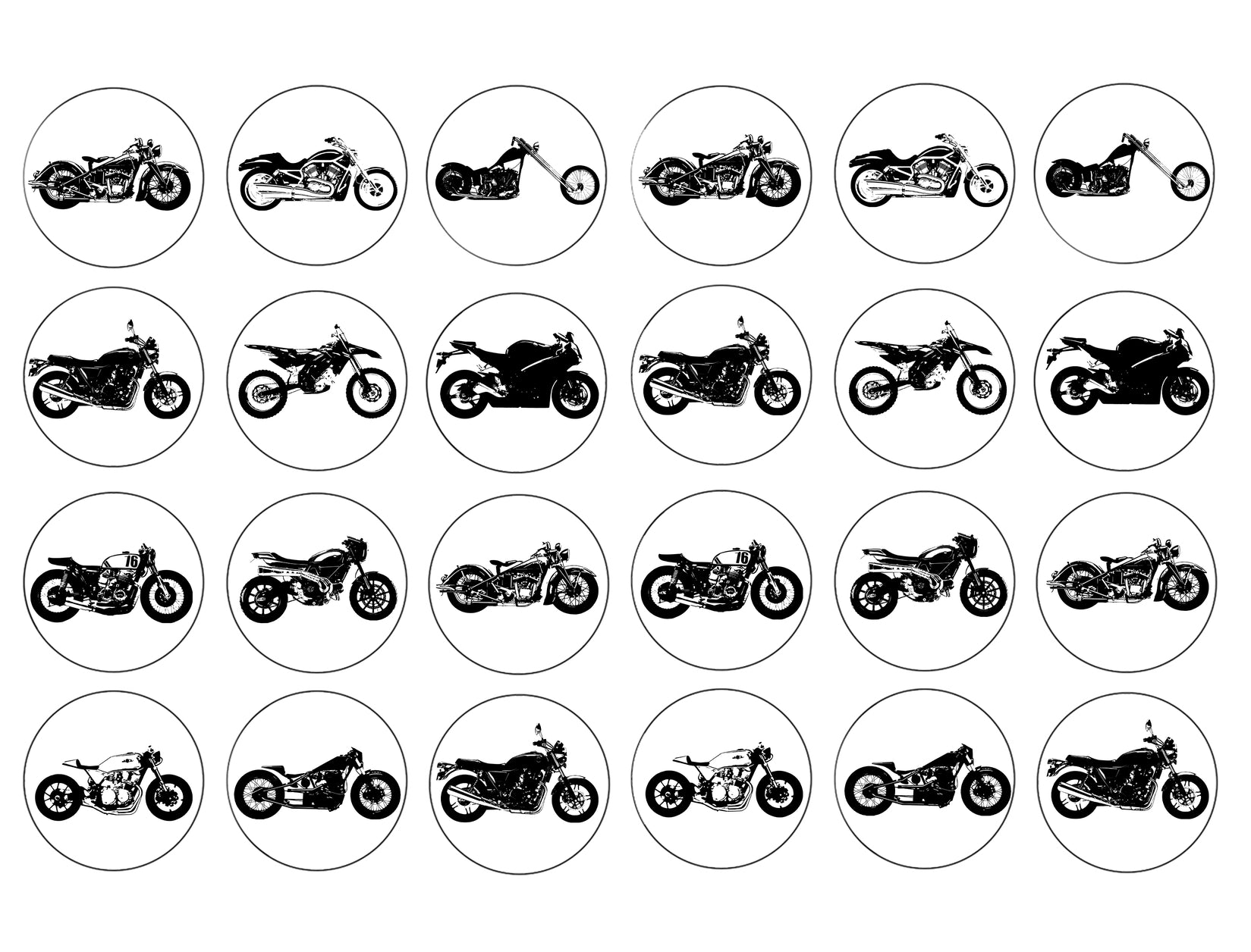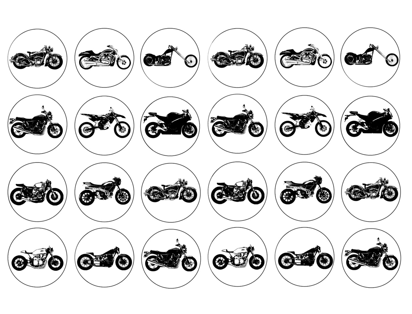 Decorate your Cupcakes with these 24 Count Vintage Motorcycle Silhouettes themed Edible Cupcake Topper Images!