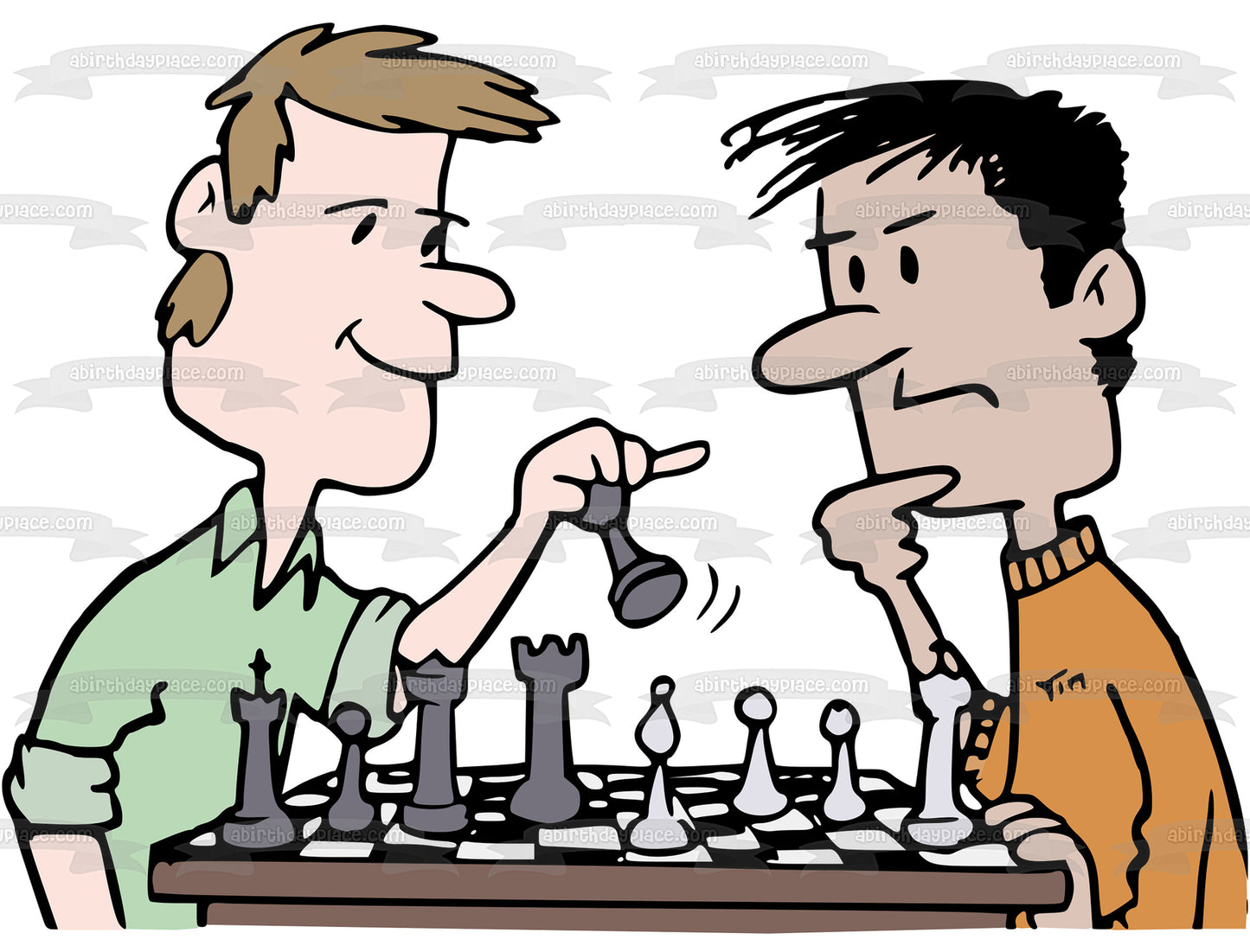 Chess Club Cartoon Illustration Edible Cake Topper Image ABPID55635