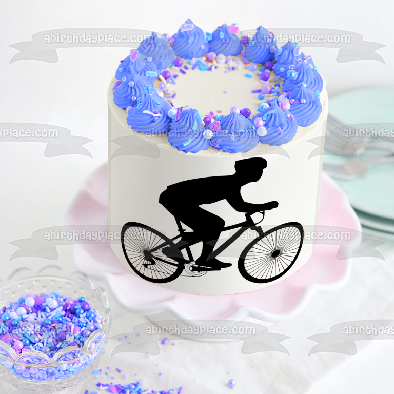 Bike Cycling Silhouette Edible Cake Topper Image ABPID55642