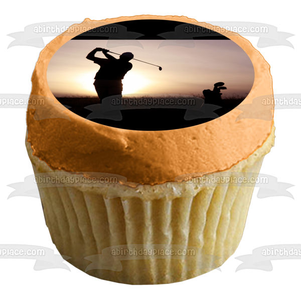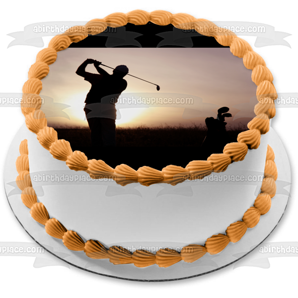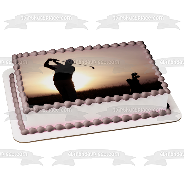 Decorate your Cake with this Golfing at Sunset Silhouette themed Edible Cake Topper Image!