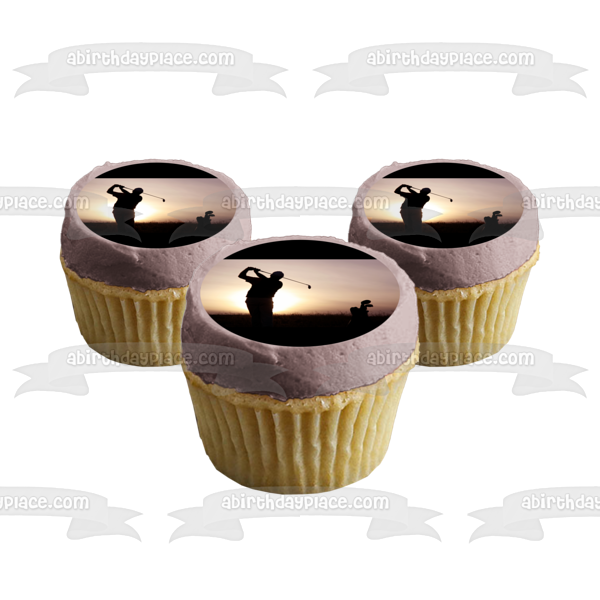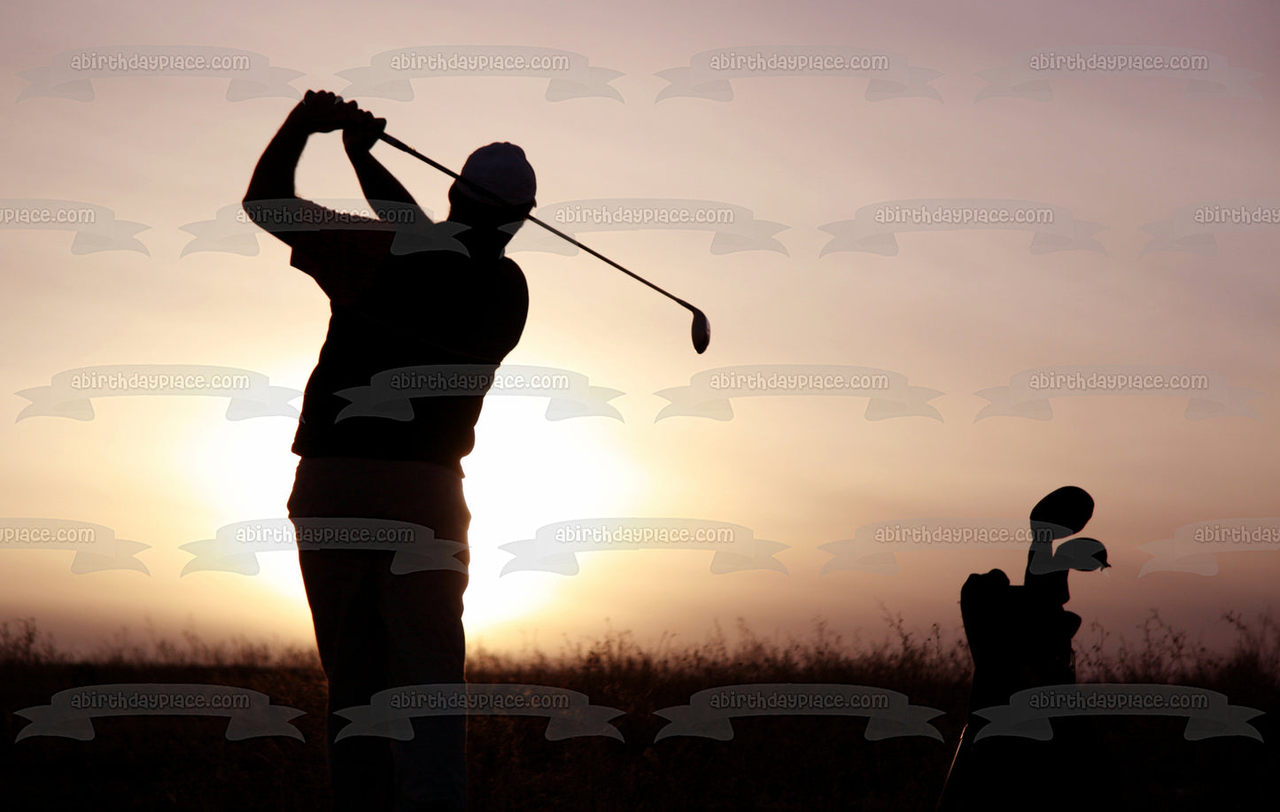 Golfing at Sunset Silhouette Edible Cake Topper Image ABPID55692