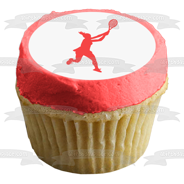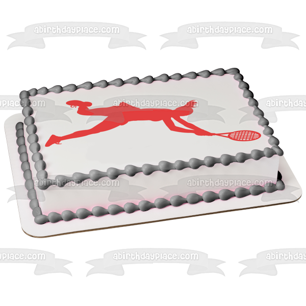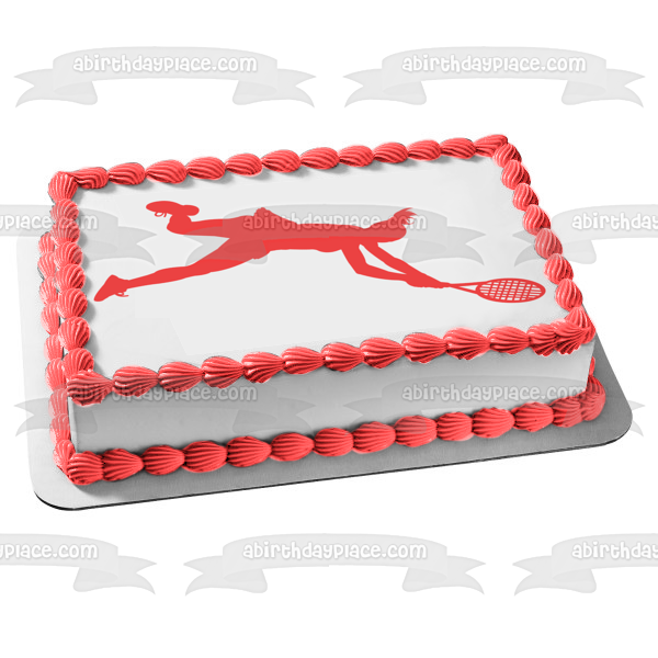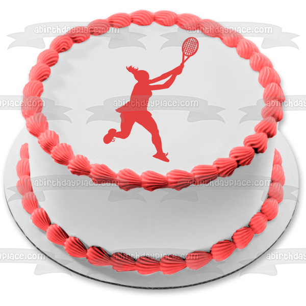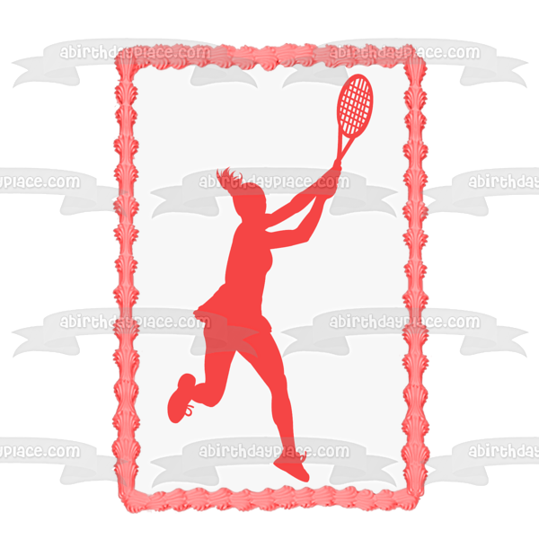 Decorate your Cake with this Women's Peach Tennis Silhouette themed Edible Cake Topper Image!