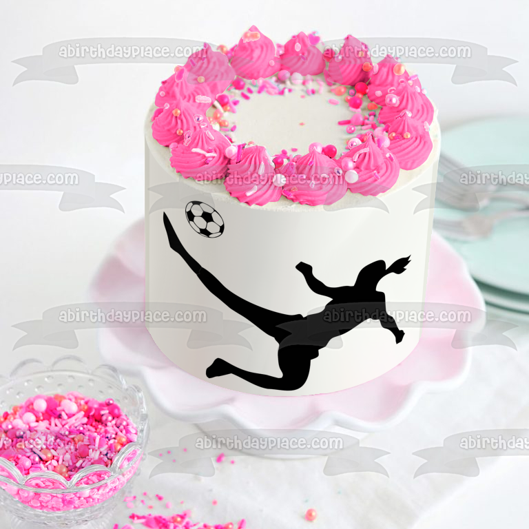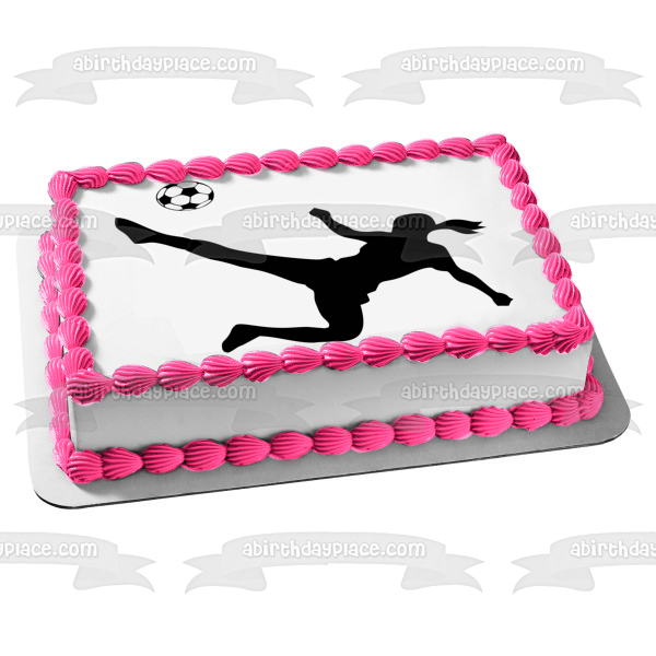 Decorate your Cake with this Women's Soccer themed Edible Cake Topper Image featuring a Ball Kicking Silhouette!