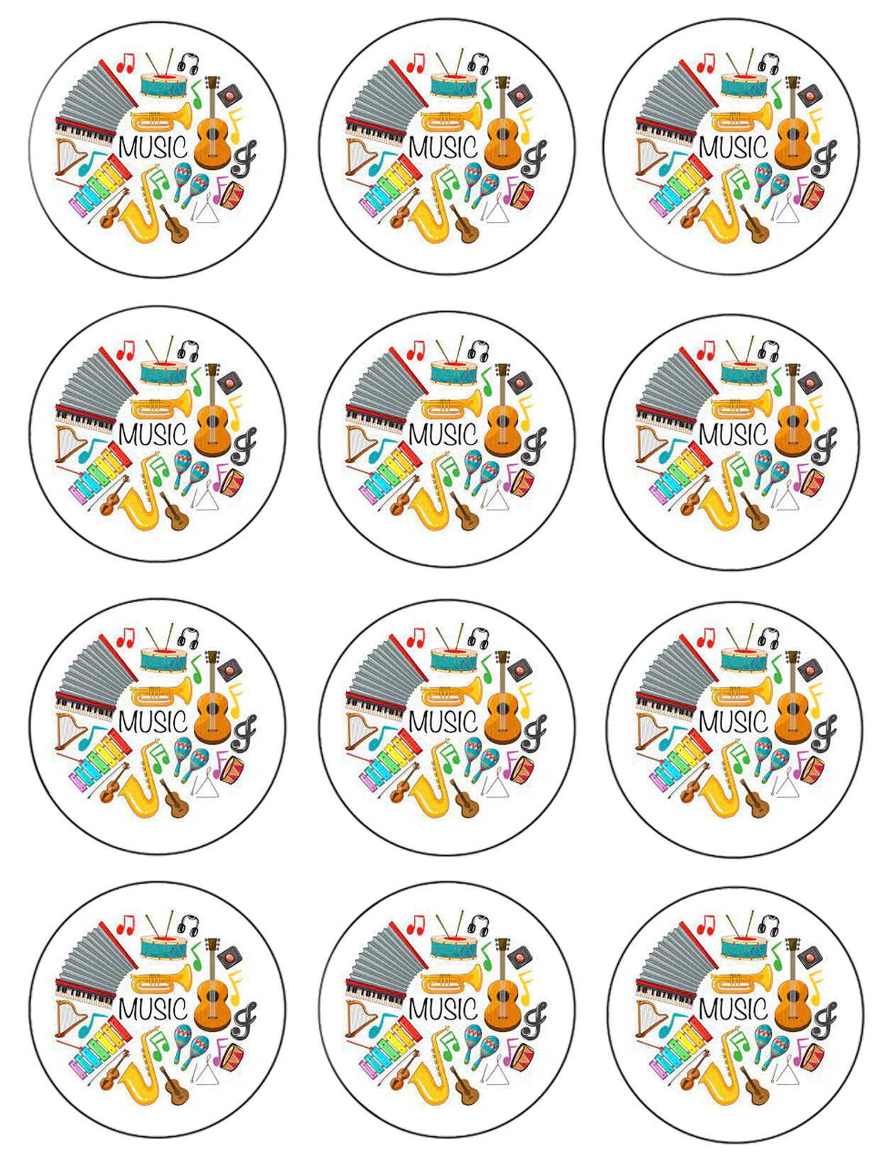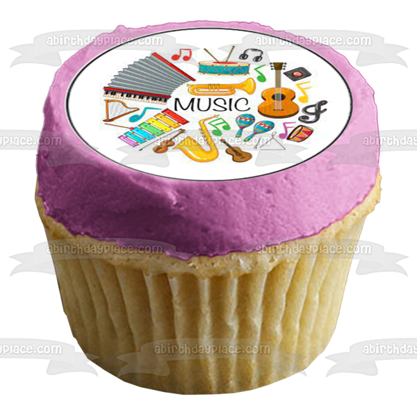 Music Band Instruments Xylophone Guitar Trumpet Violin Edible Cupcake Topper Images ABPID55731