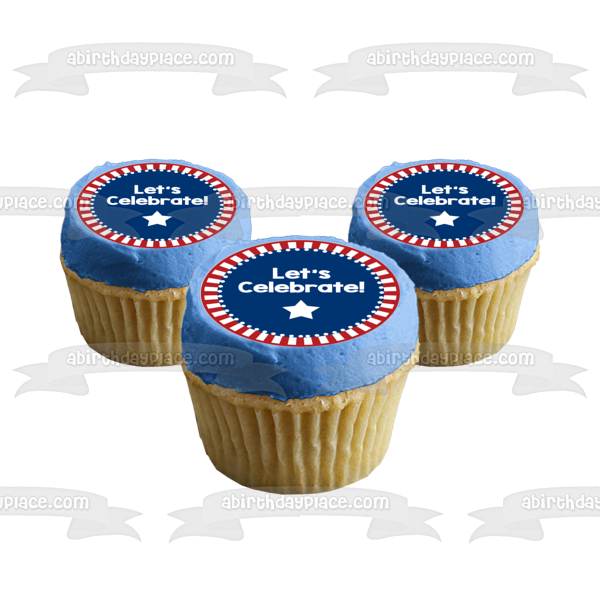 Decorate your Cupcakes with these 12 Count Happy Memorial Day themed Edible Cupcake Topper Images featuring Lets Celebrate and Stars!