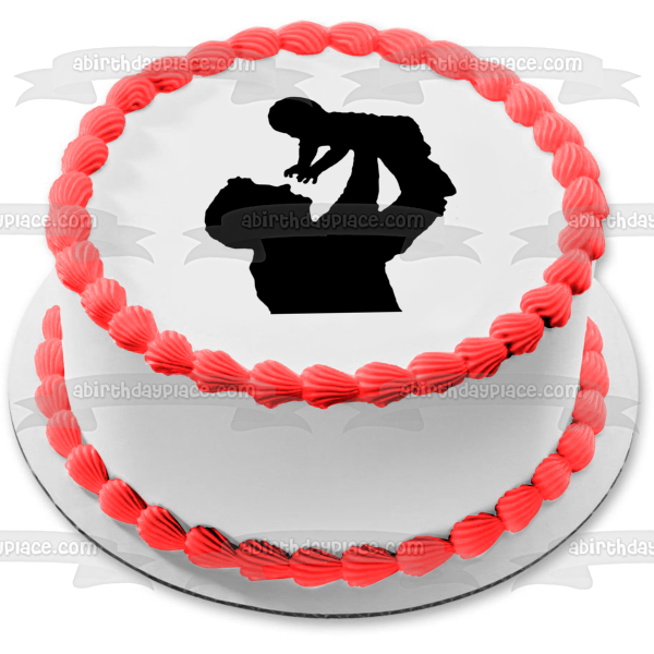 Decorate your Cake with this Happy Father's Day themed Edible Cake Topper Image featuring a Father and Baby Silhouette!