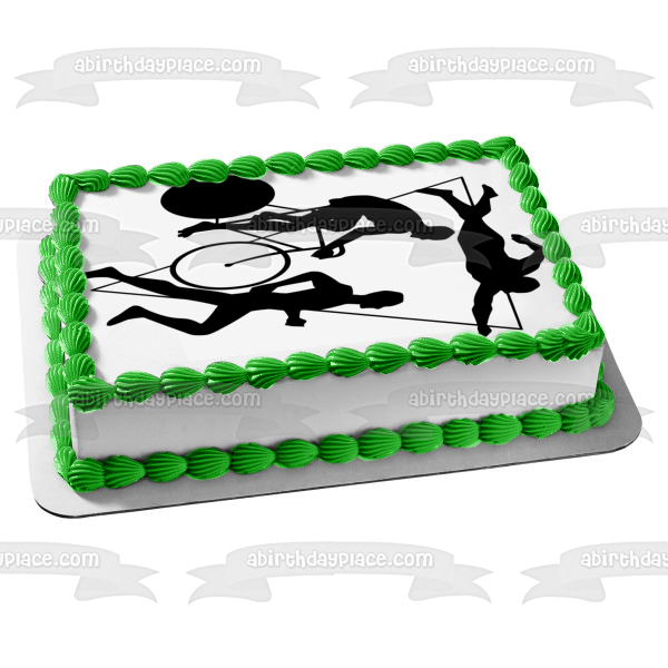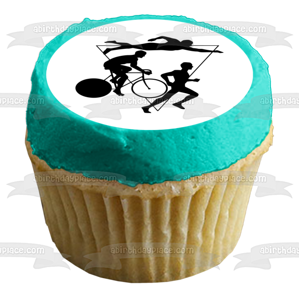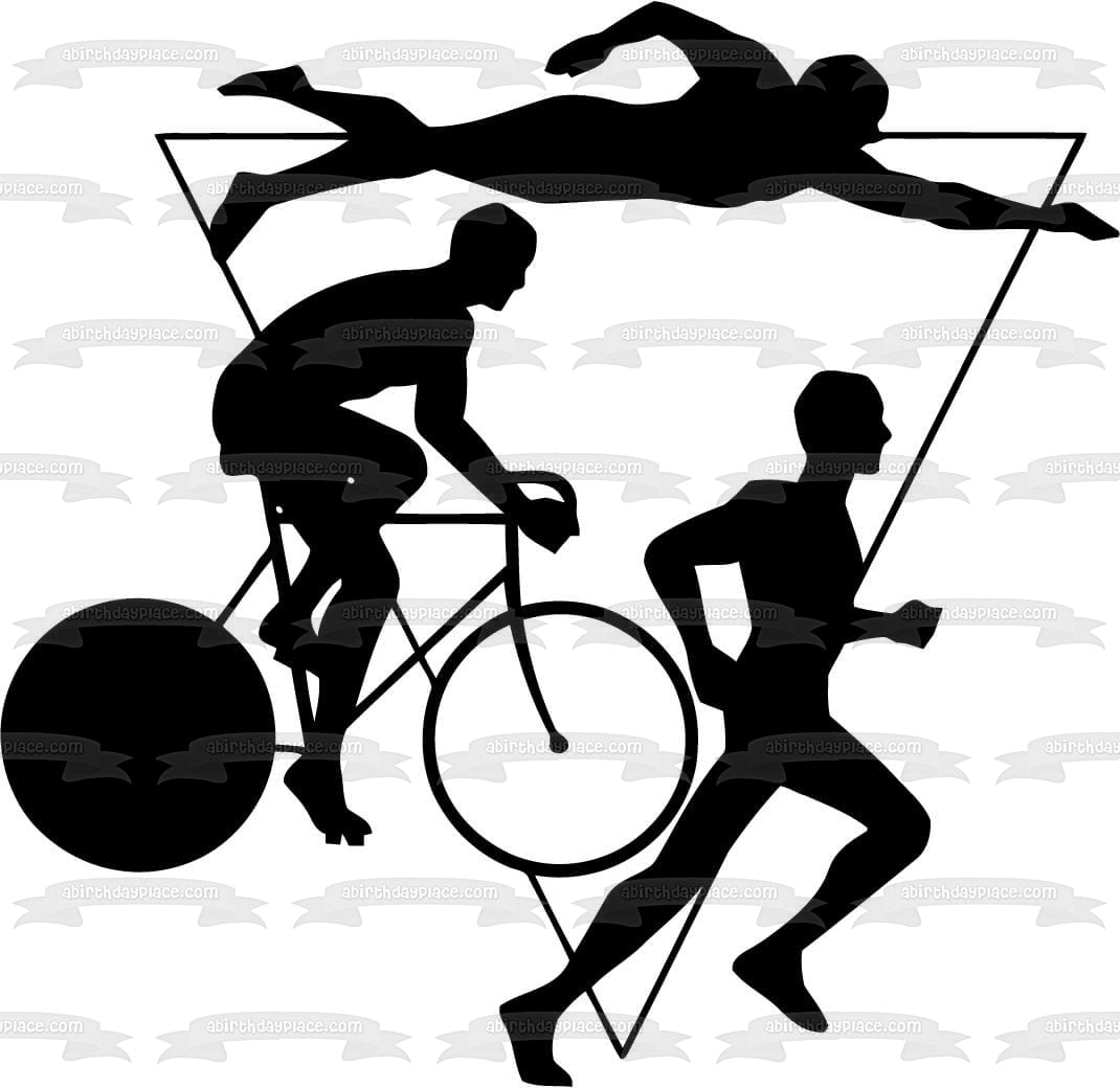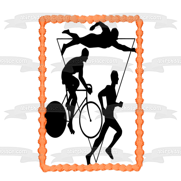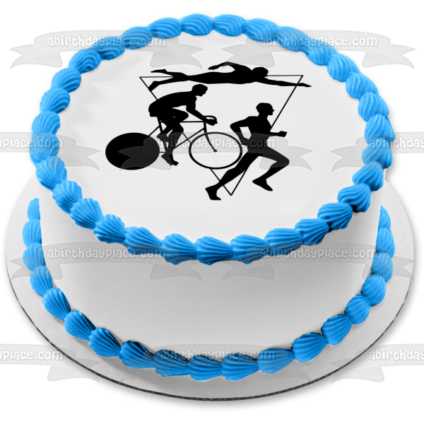Decorate your Cake with this Iron Man Triathlon themed Edible Cake Topper Image featuring the Athletes Logo Silhouettes!