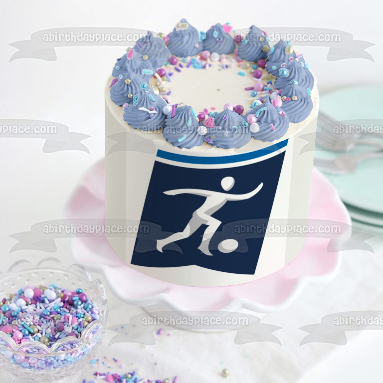 Decorate your Cake with this NCAA themed Edible Cake Topper Image featuring the Men's Soccer Logo!