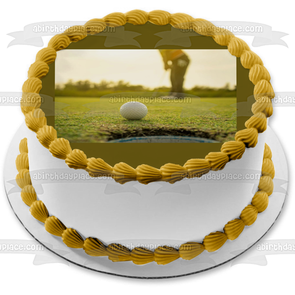 Decorate your Cake with this Golf themed Edible Cake Topper Image featuring a Man Golfing as a Retirement Hobby!