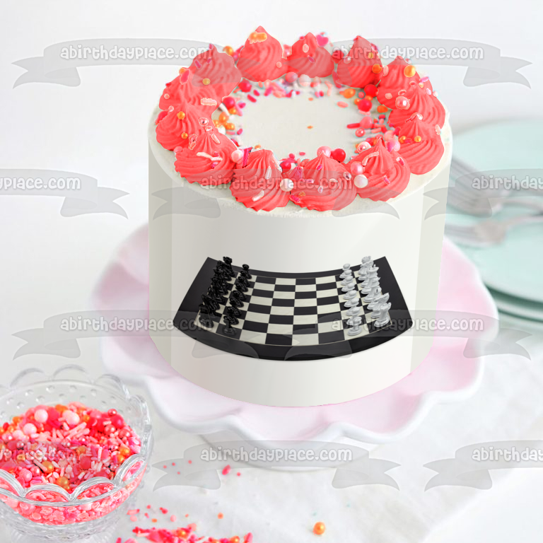Decorate your Cake with this Chess Club themed Edible Cake Topper Image featuring a Chess Board Board Game!