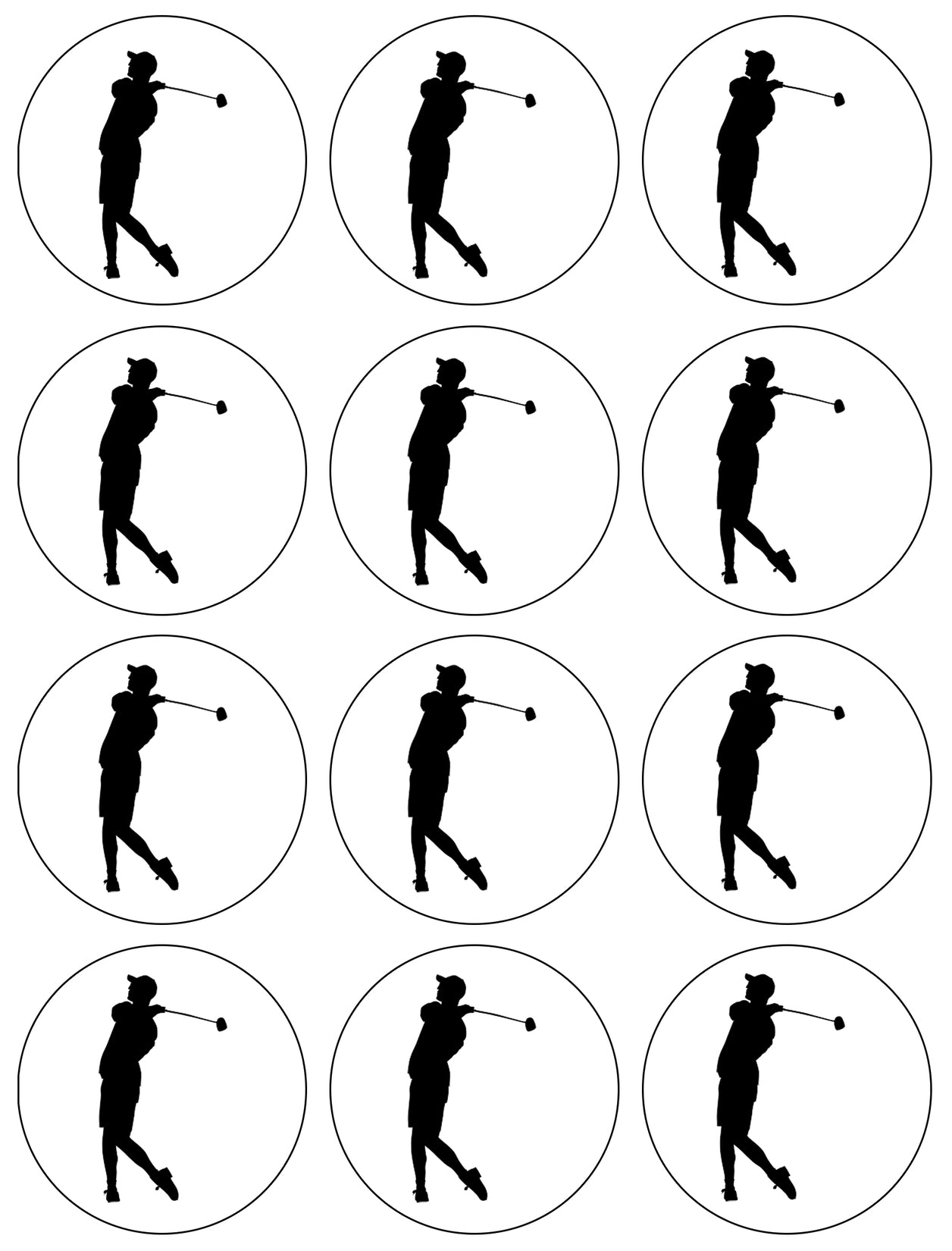 Decorate your Cupcakes with these 12 Count Golfing themed Edible Cupcake Topper Images featuring a Golf Backswing Silhouette!