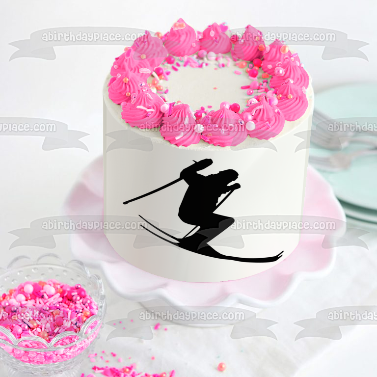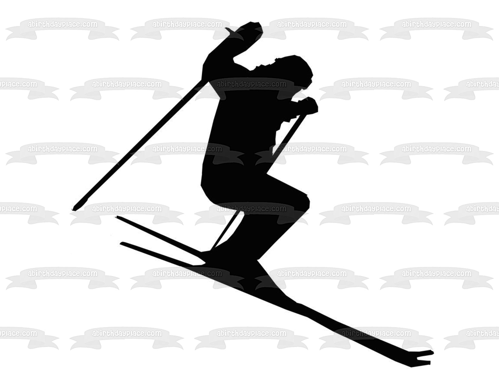 Skiing Winter Sport Action Silhouette Skis Edible Cake Topper Image ABPID55890