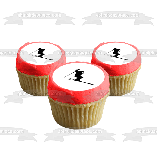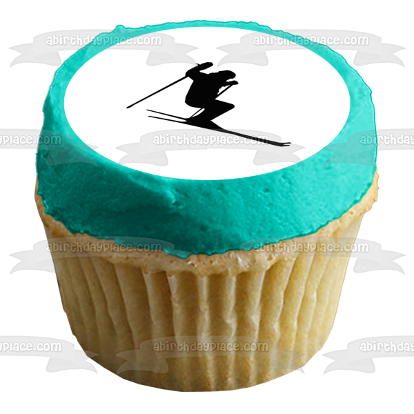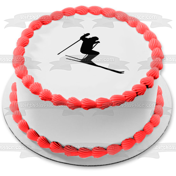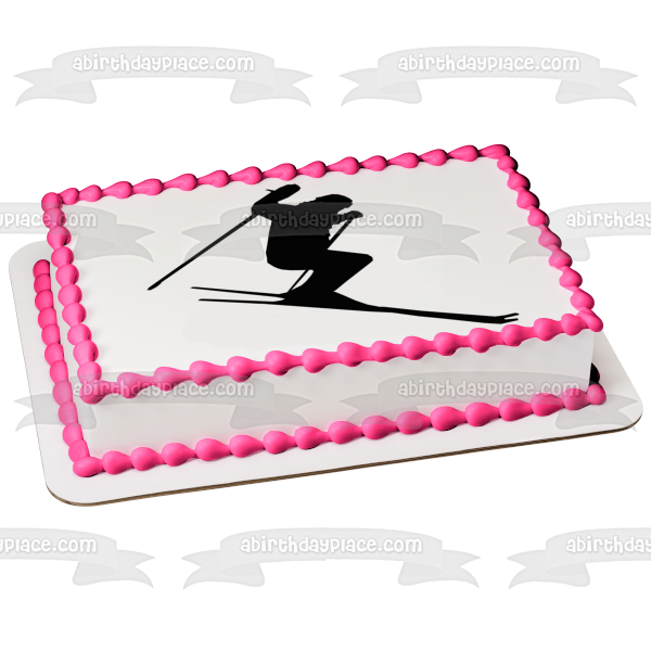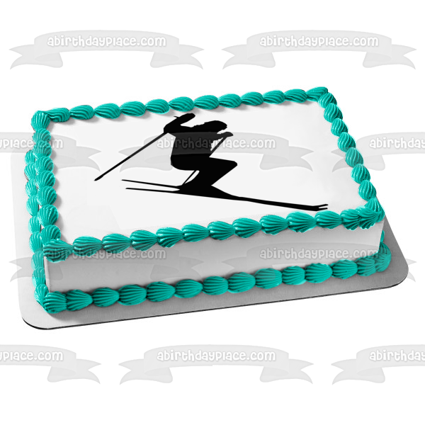 Decorate your Cake with this Skiing Winter Sport Action Silhouette themed Edible Cake Topper Image featuring Skis!