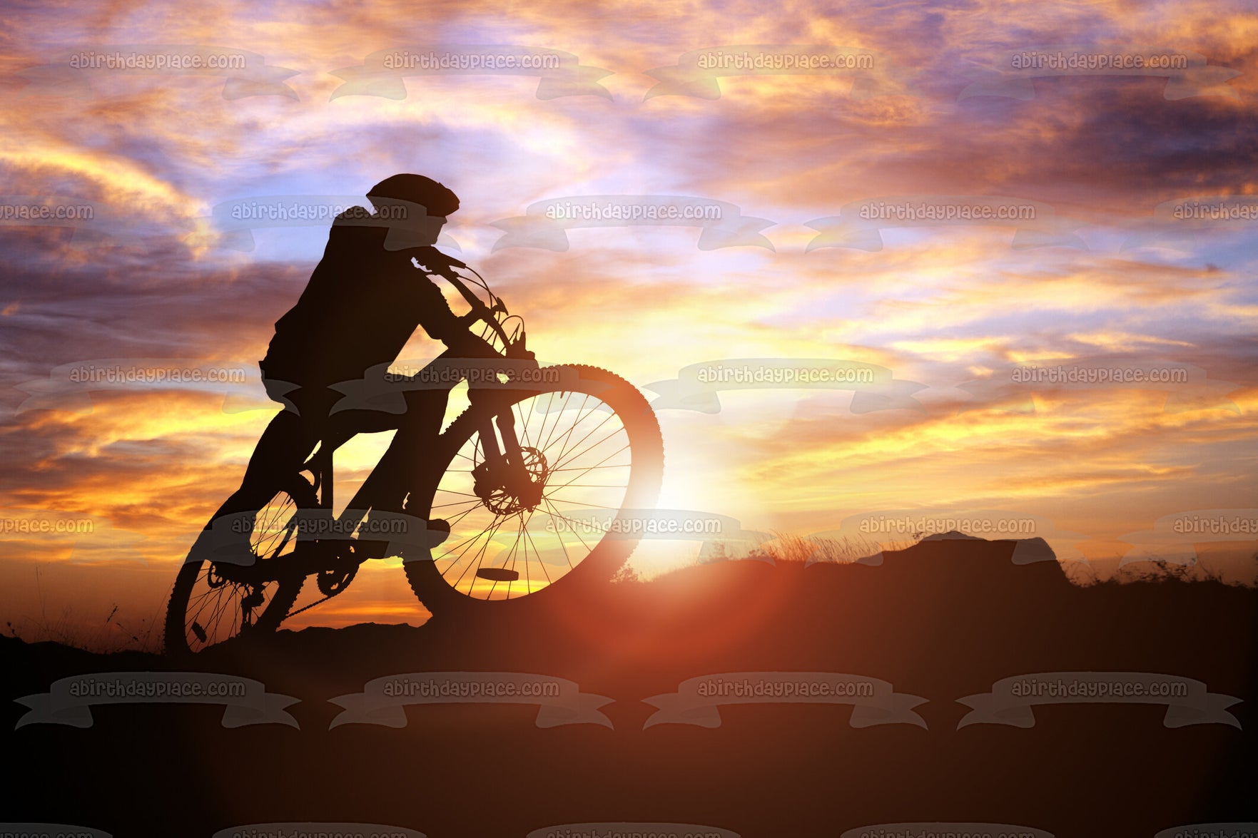 Mountain Biking Bike at Sunset Silhouette Edible Cake Topper Image ABPID55930