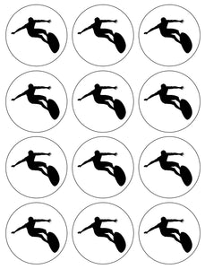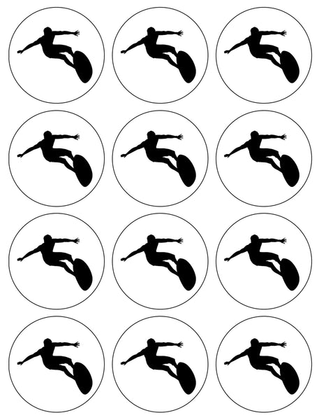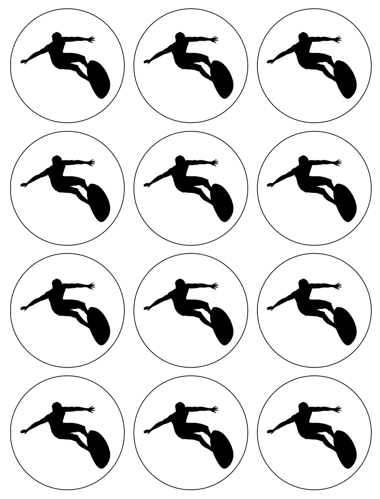 Decorate your Cupcakes with these 12 Count Surfing Sport Silhouette themed Edible Cupcake Topper Images!