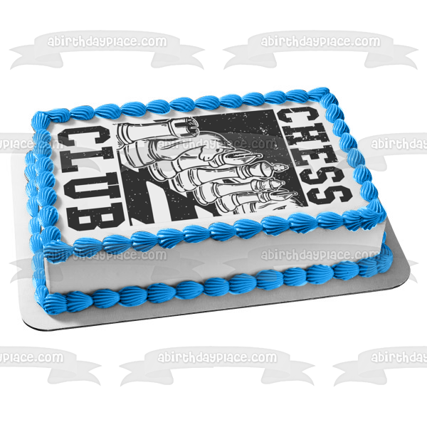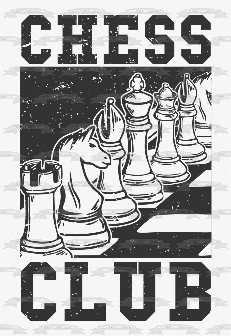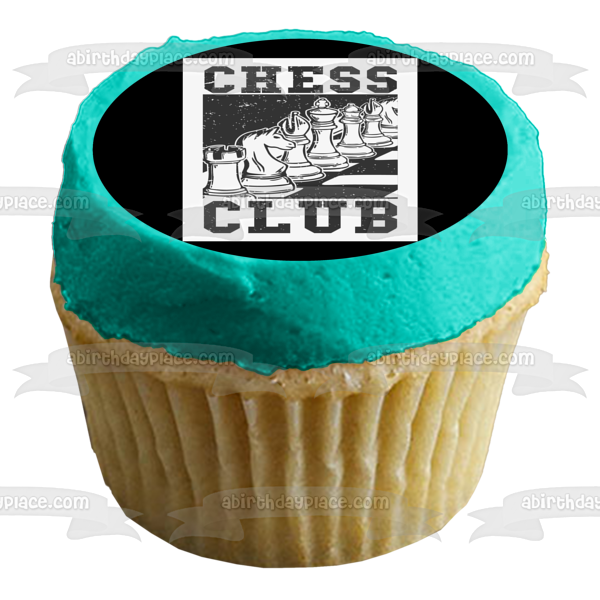 Decorate your Cake with this Vintage Chess Club themed Edible Cake Topper Image featuring a Chess Board with the White Set!