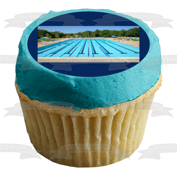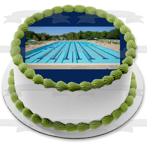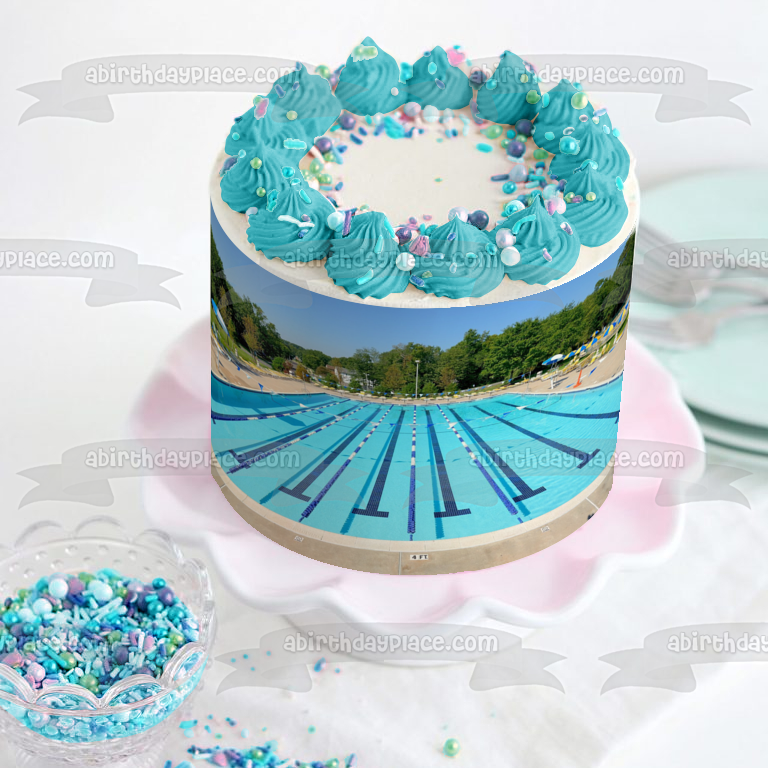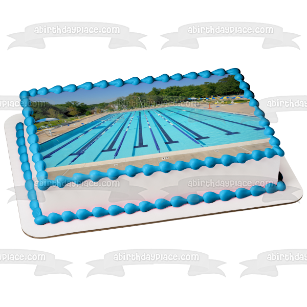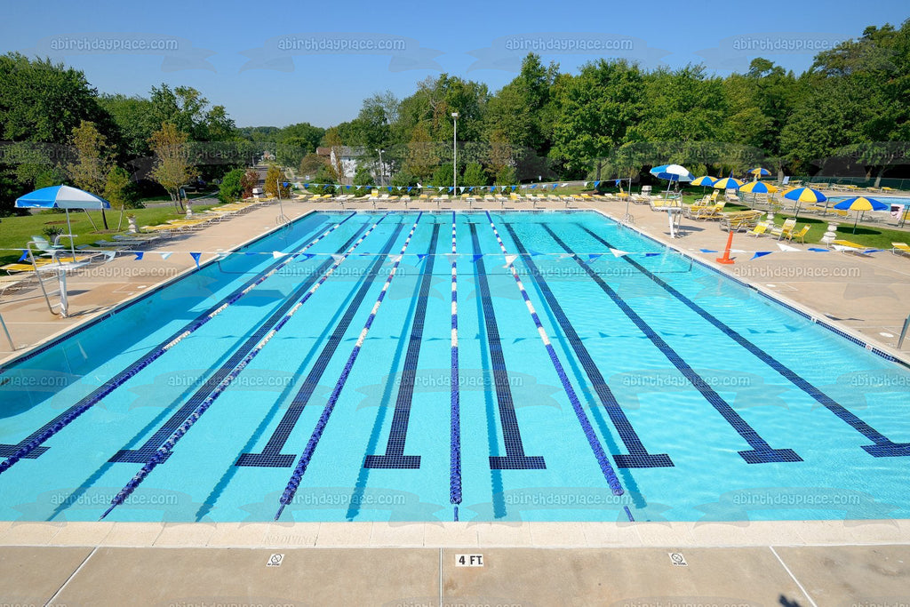 Swimming Competition Outdoor Pool with Lanes Edible Cake Topper Image ABPID55971