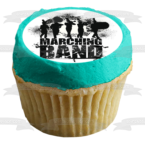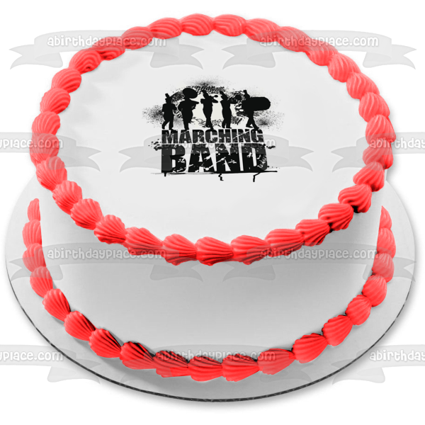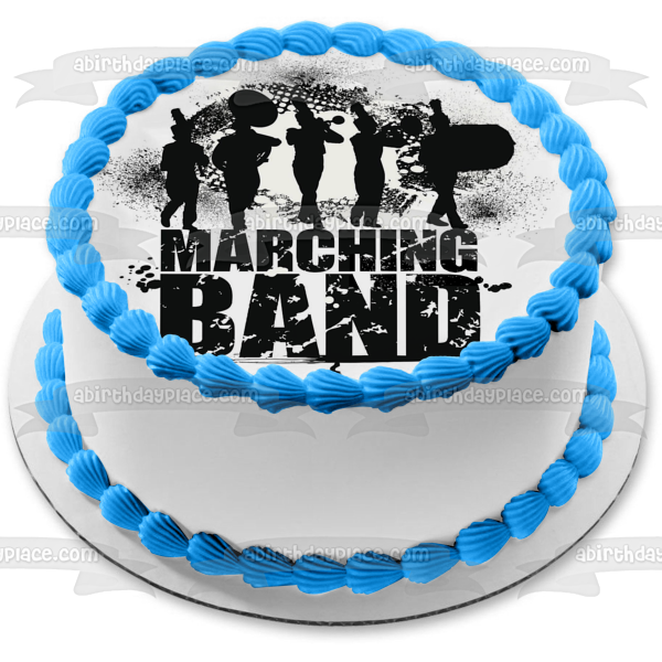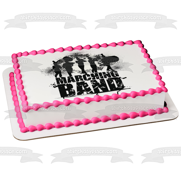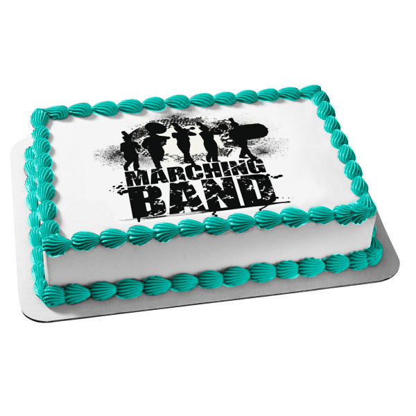 Decorate your Cake with this Marching Band Splatter themed Edible Cake Topper Image featuring a Trumpet and Drum Silhouettes!