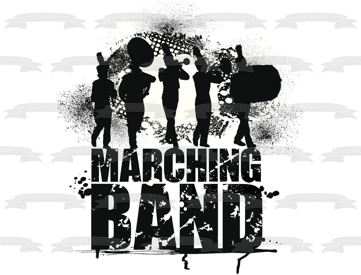 Marching Band Splatter Trumpet Drum Silhouettes Edible Cake Topper Image ABPID55980
