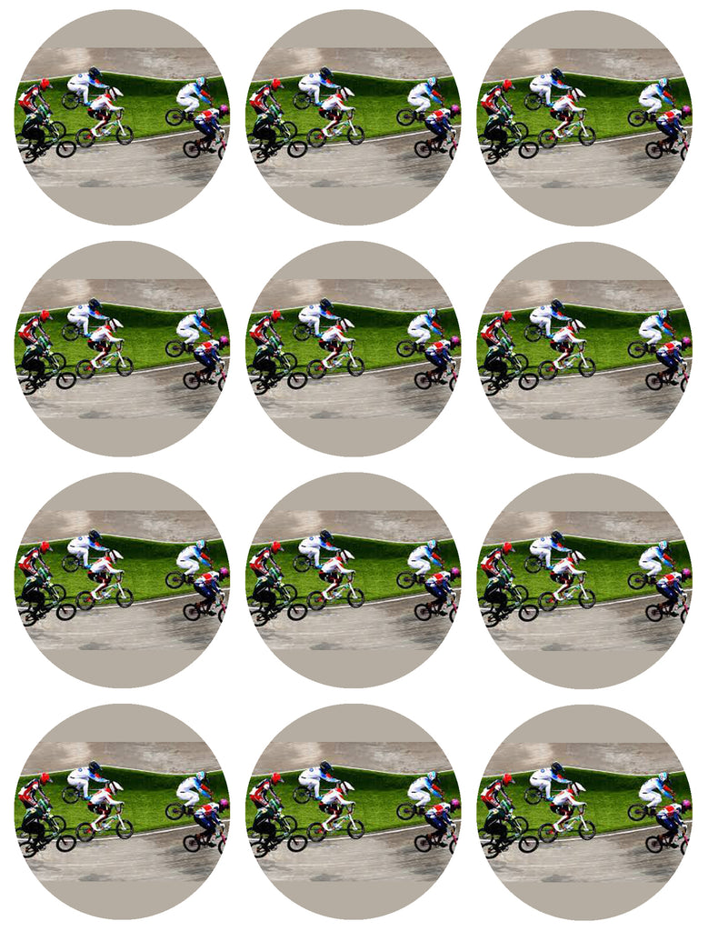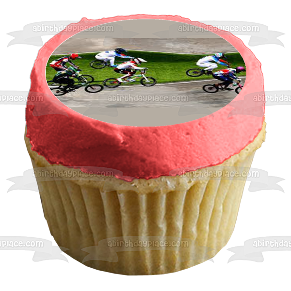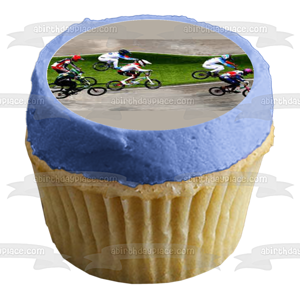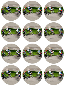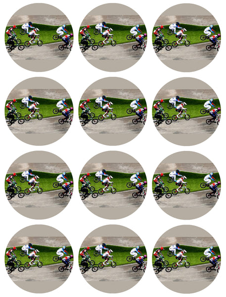 Decorate your Cupcakes with these 12 Count BMX themed Edible Cupcake Topper Images featuring a Dirt Bike Racing Scene!