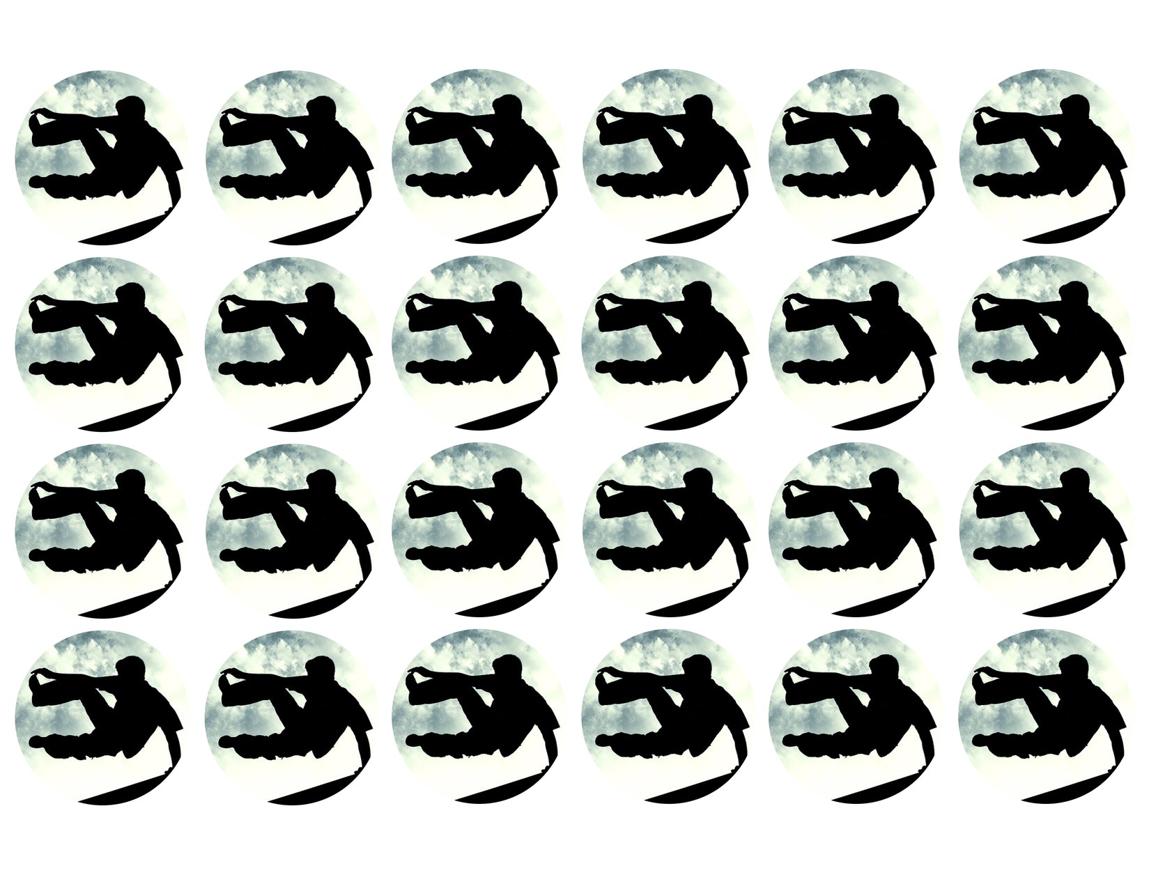 Decorate your Cupcakes with these 24 Count Parkour Silhouette themed Edible Cupcake Topper Images featuring a Jump Action Shot!