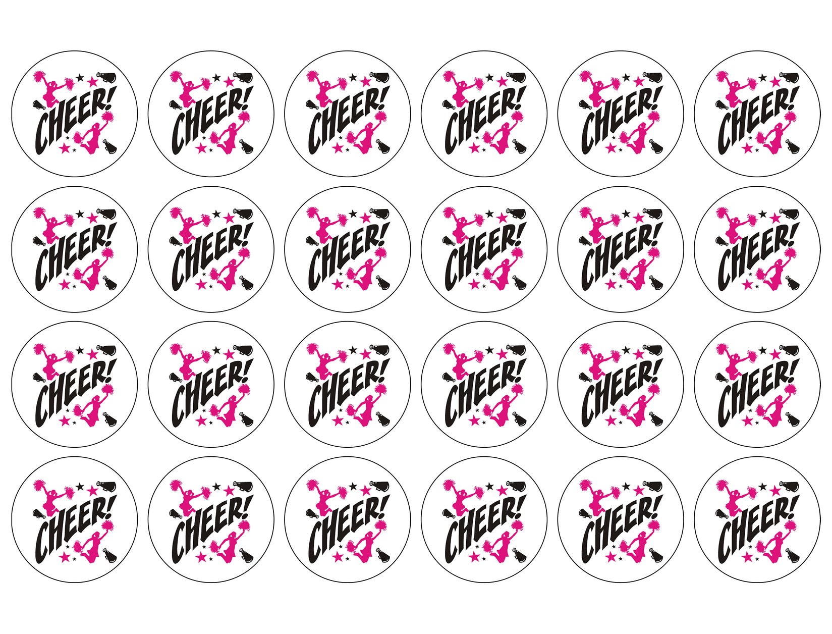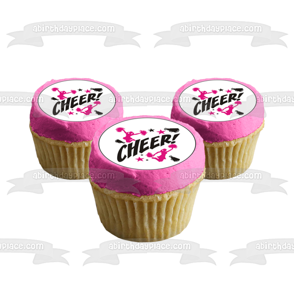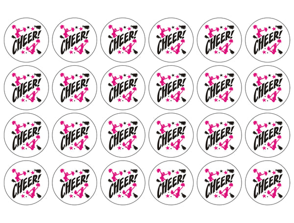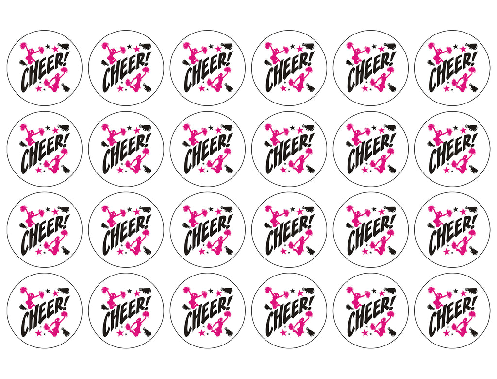 Decorate your Cupcakes with these 24 Count Cheerleader Silhouettes themed Edible Cupcake Topper Images featuring Pink and Black Stars!