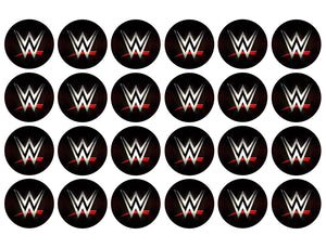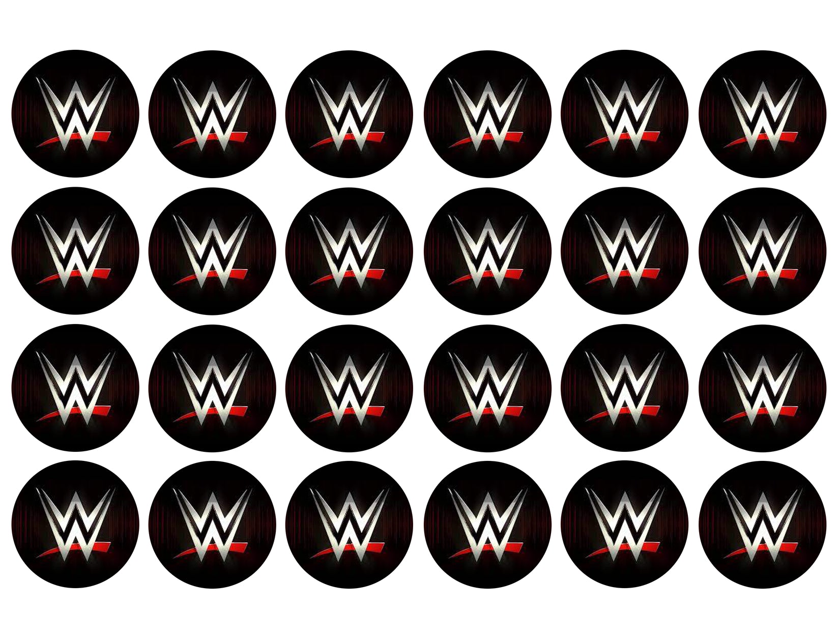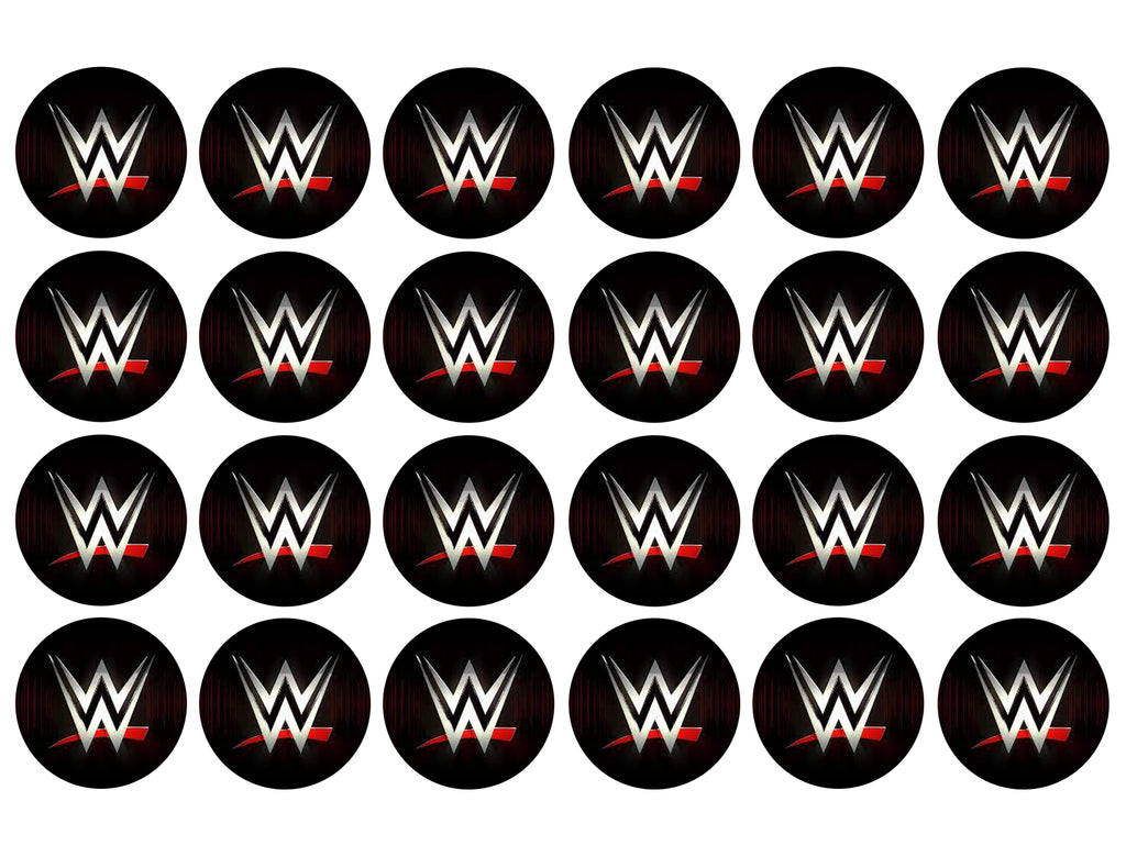 Decorate your Cupcakes with these 24 Count WWE themed Edible Cupcake Topper Images featuring the World Wrestling Entertainment Logo!