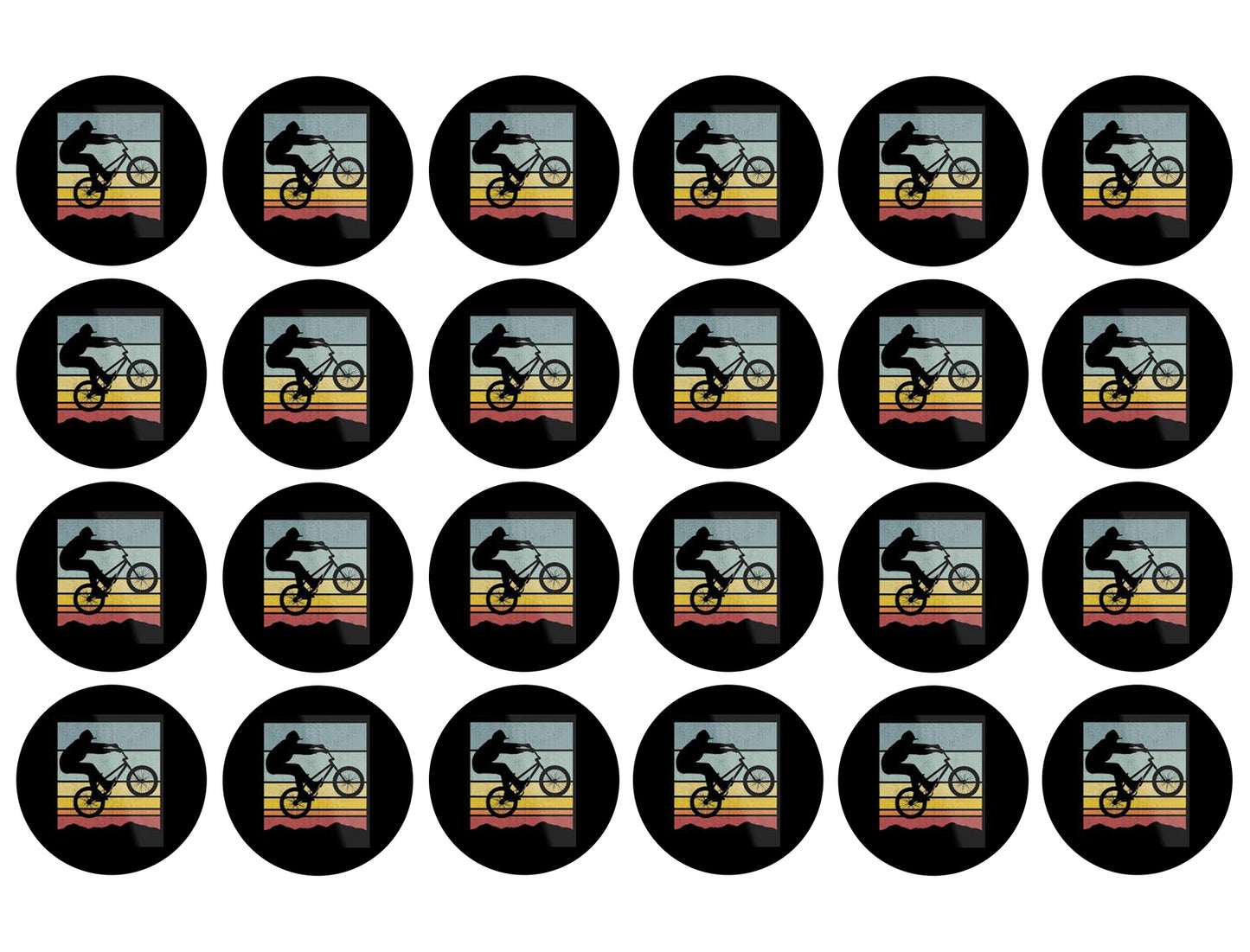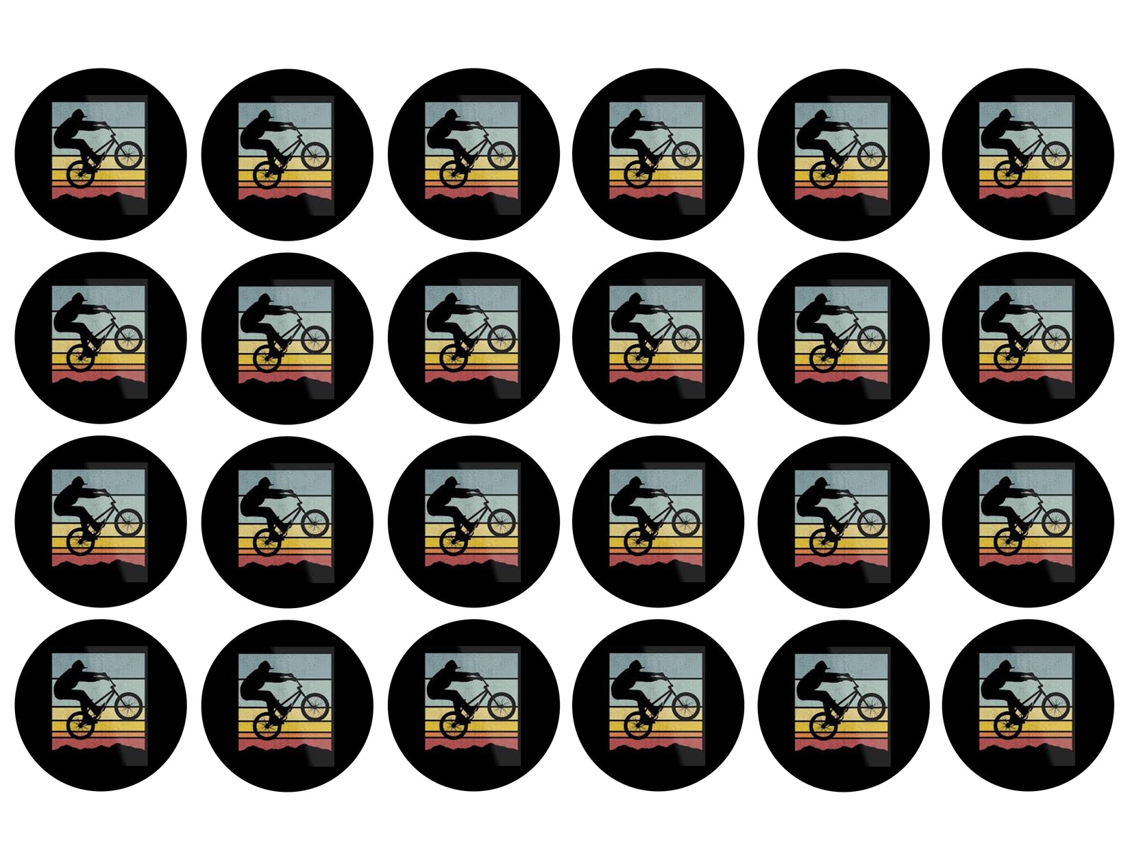 Decorate your Cupcakes with these 24 Count Vintage Dirt Bike Racing themed Edible Cupcake Topper Images featuring Rough Terrain!