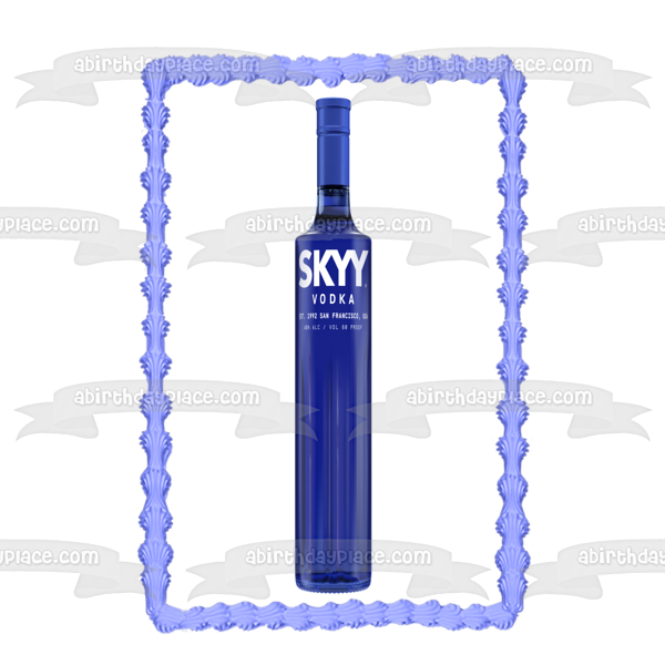 Decorate your Cake with this Skyy Vodka themed Edible Cake Topper Image featuring their Blue Bottle!