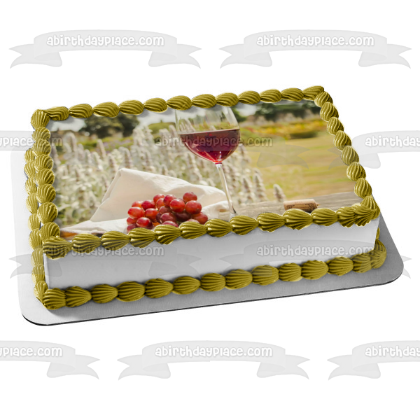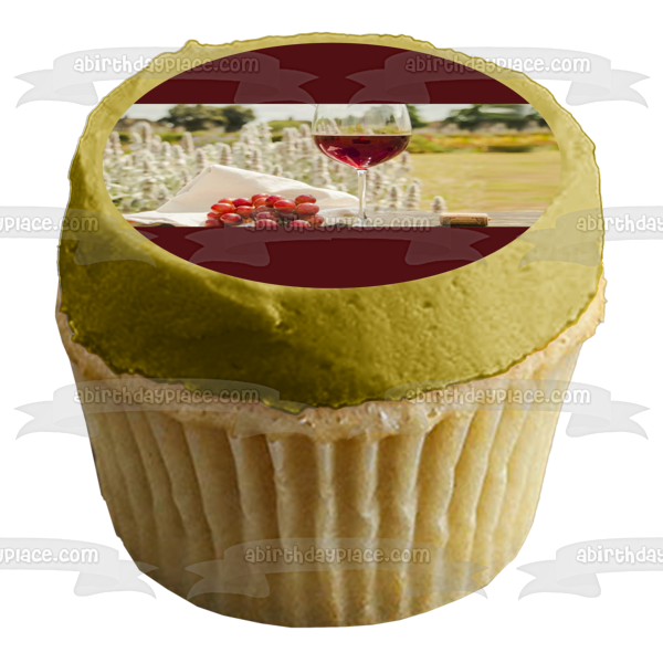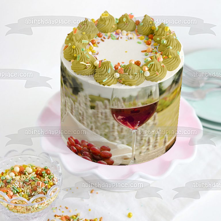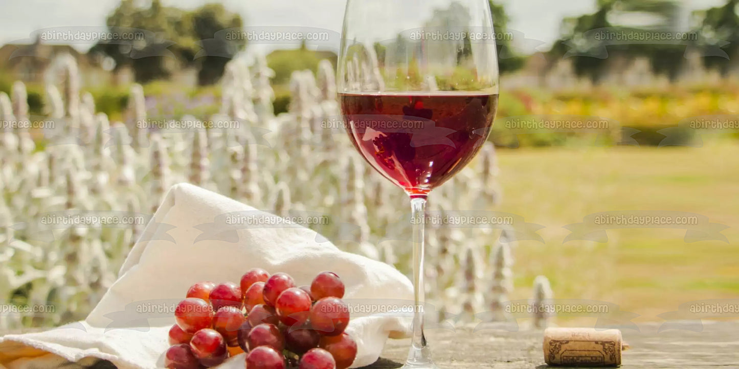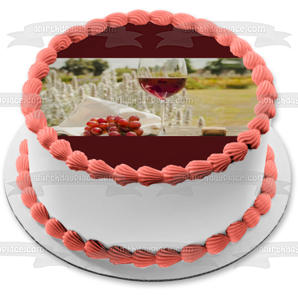 Decorate your Cake with this Red Wine in a Glass themed Edible Cake Topper Image featuring Flowers and Grapes!