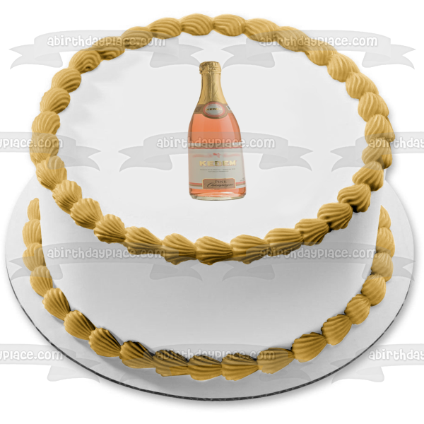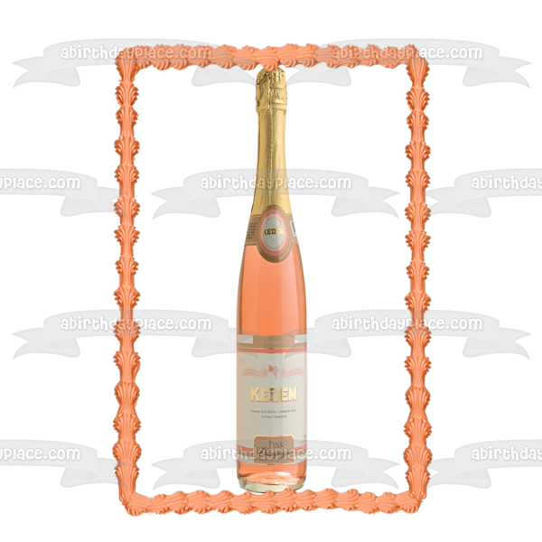 Decorate your Cake with this Kedem Pink Champagne Bottle themed Edible Cake Topper Image!