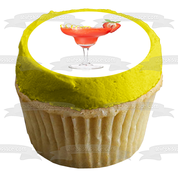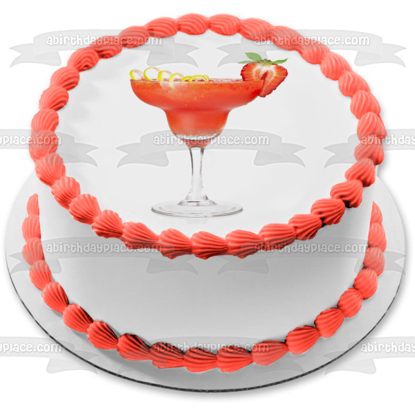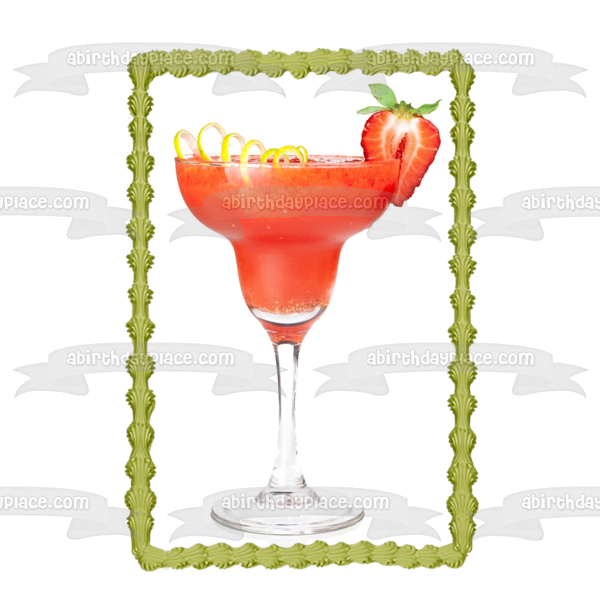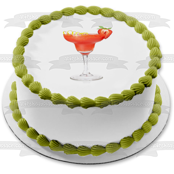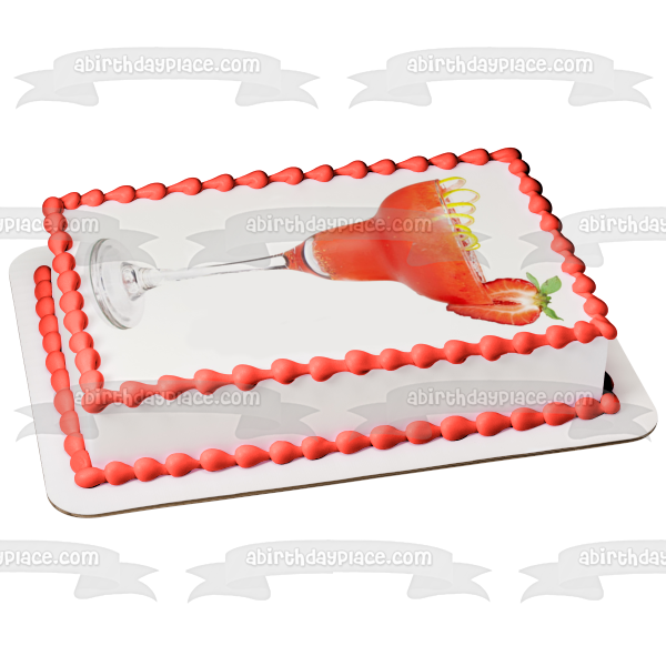 Decorate your Cake with this Strawberry Margarita themed Edible Cake Topper Image featuring Lemon Peels!