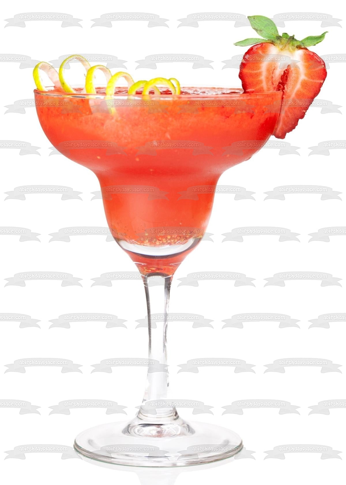 Strawberry Margarita with Lemon Peels Edible Cake Topper Image ABPID56081