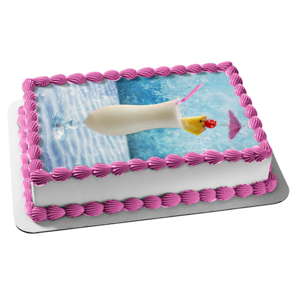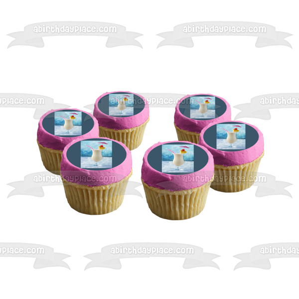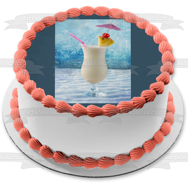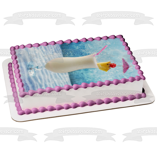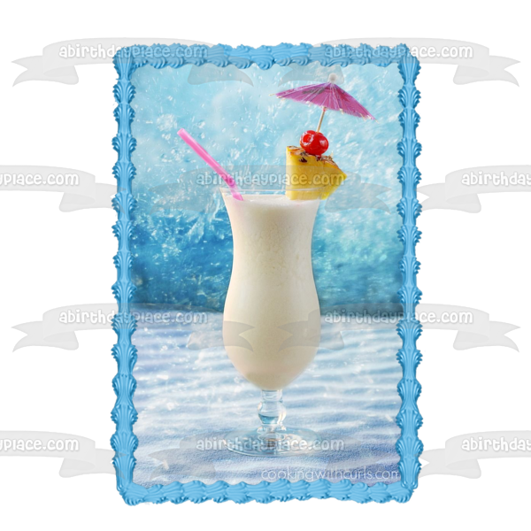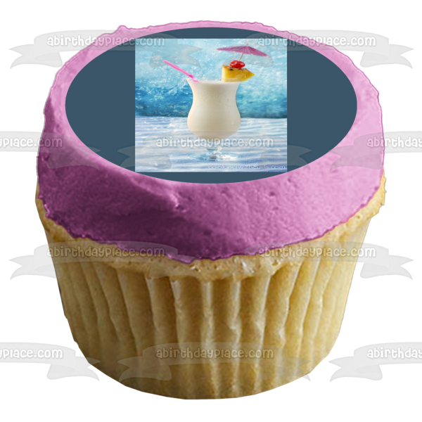 Decorate your Cake with this Pina Colada themed Edible Cake Topper Image featuring Pineapple, Cherry and a Drink Umbrella!