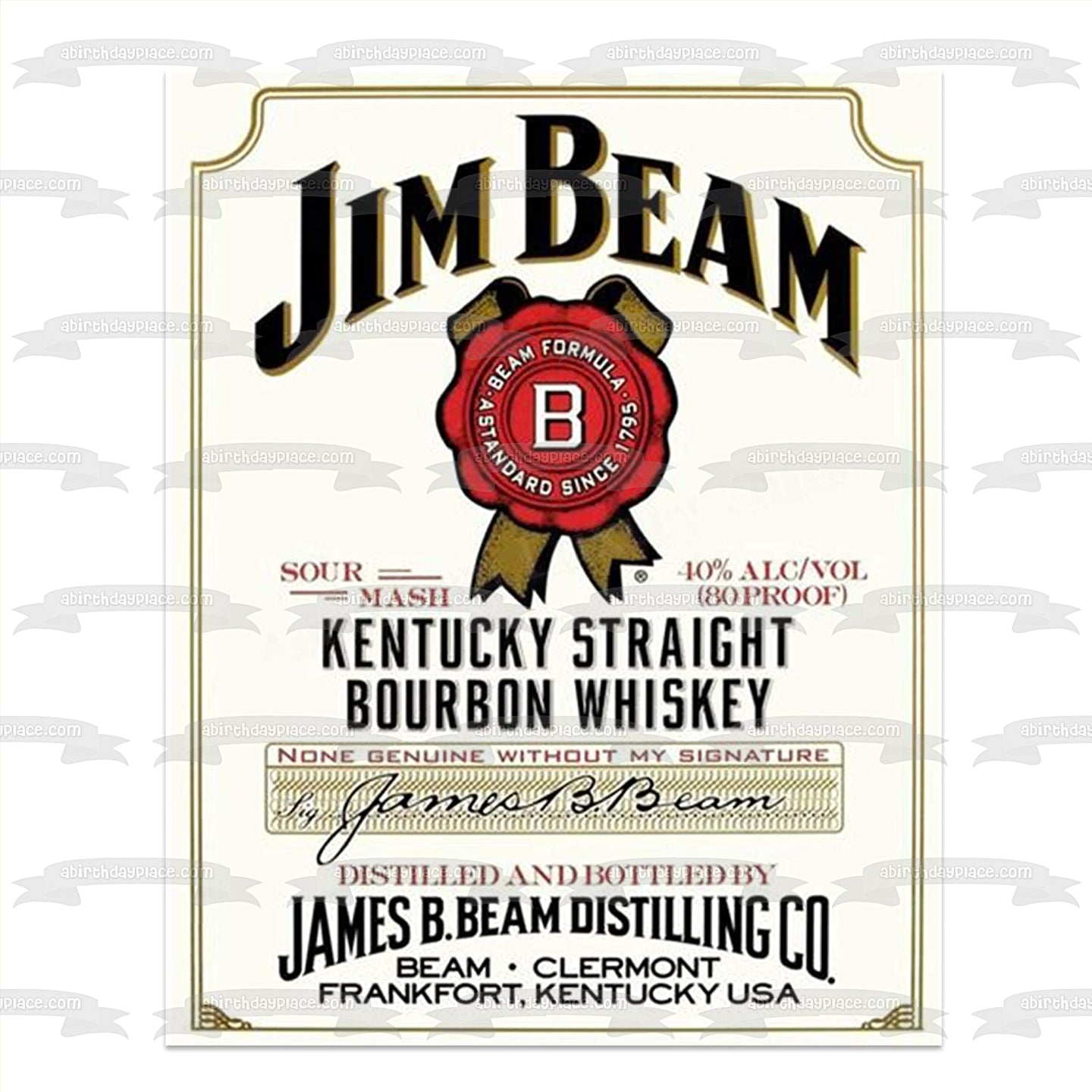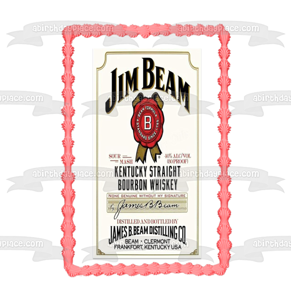 Decorate your Cake with this Jim Beam Kentucky Straight Bourbon Whiskey themed Edible Cake Topper Image featuring their Label!