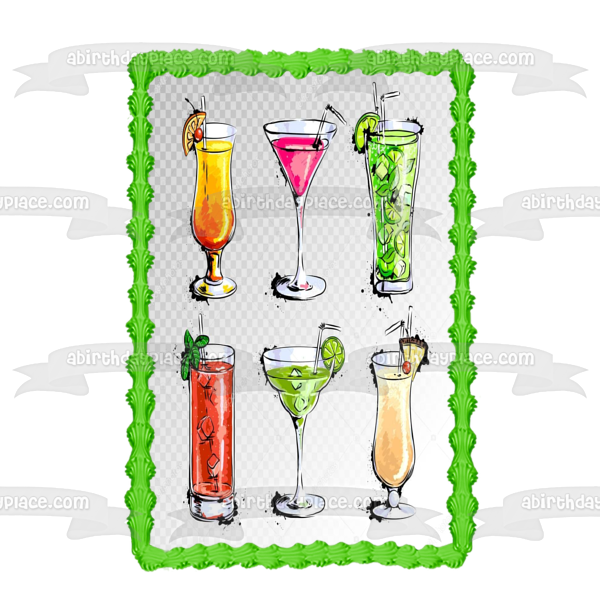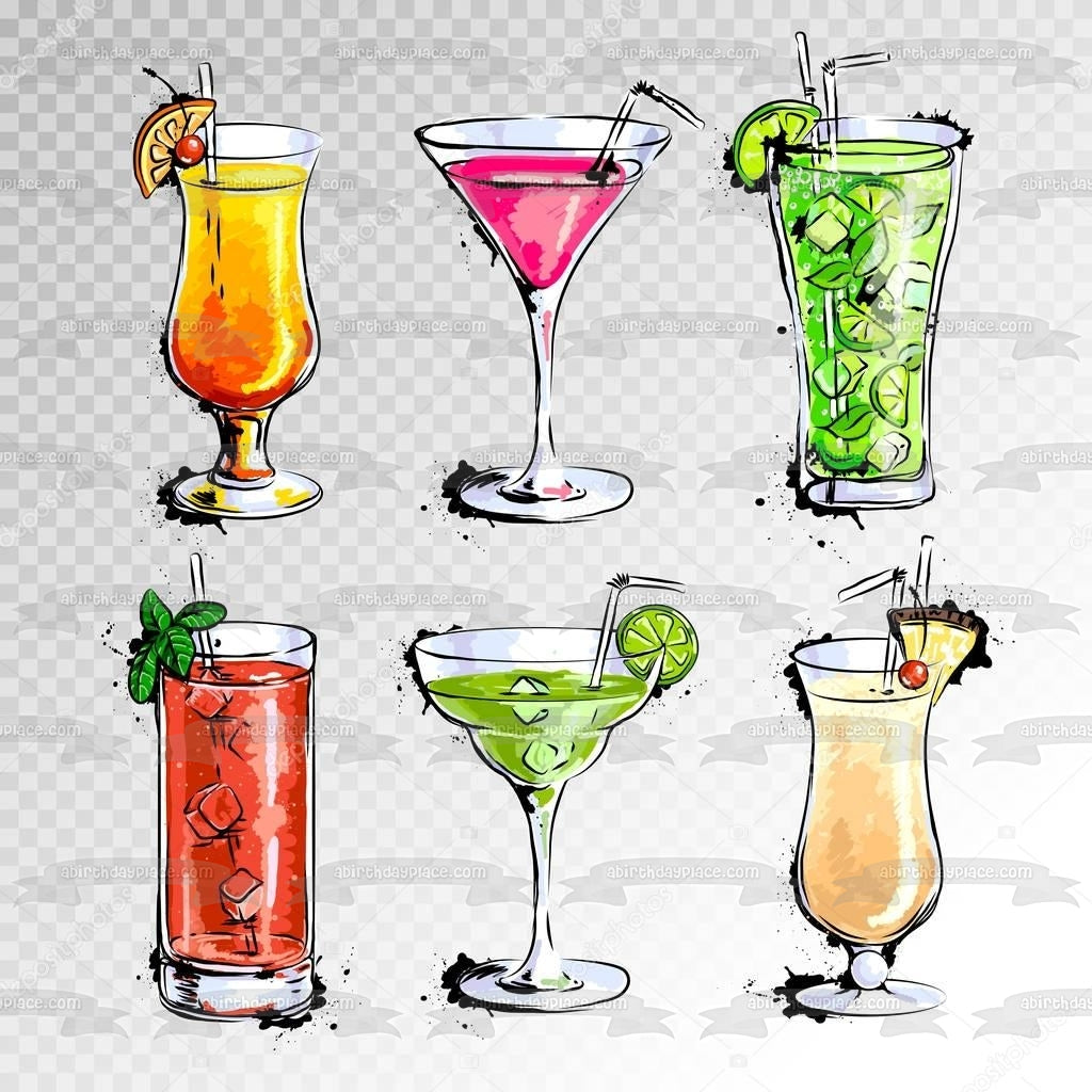 Mixed Drink Illustrations Margarita Pina Colada Long Island Iced Teaq Edible Cake Topper Image ABPID56097