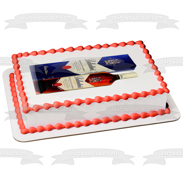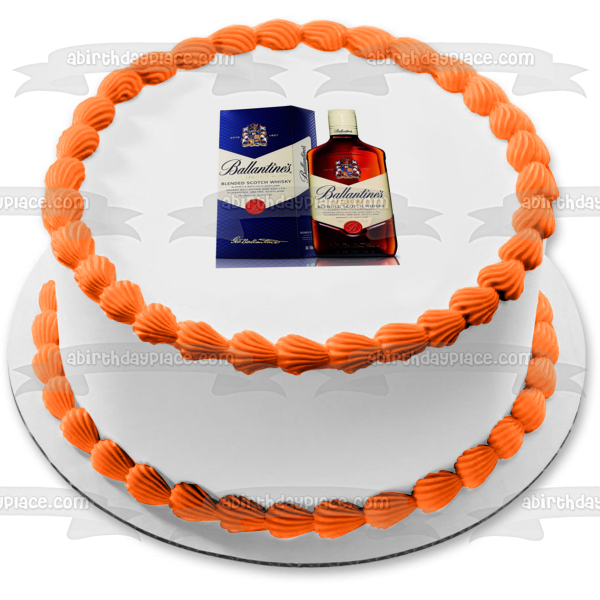 Decorate your Cake with this Ballantine's Finest Blended Scotch Whiskey themed Edible Cake Topper Image featuring their Bottle and Box!