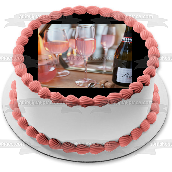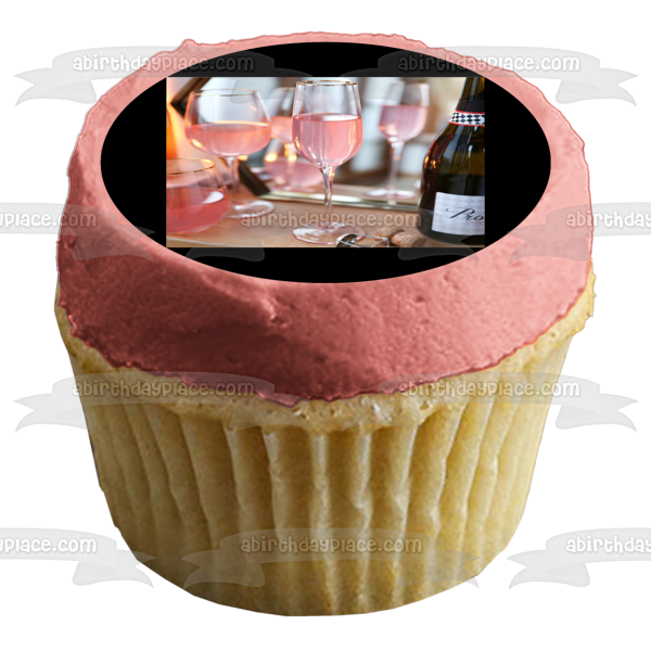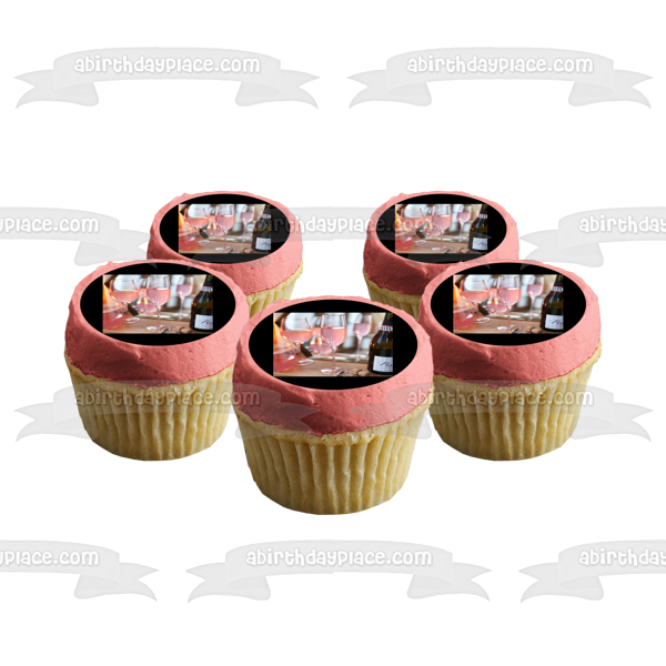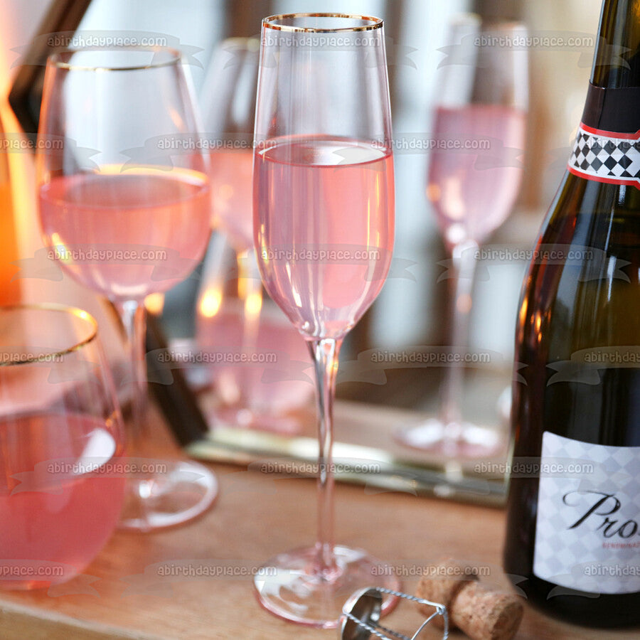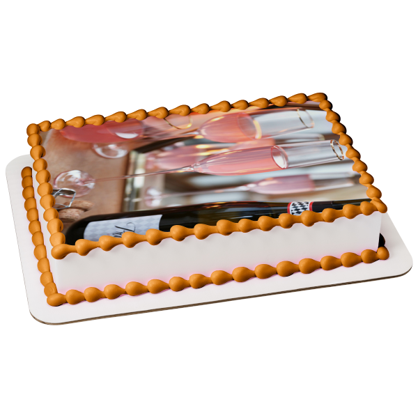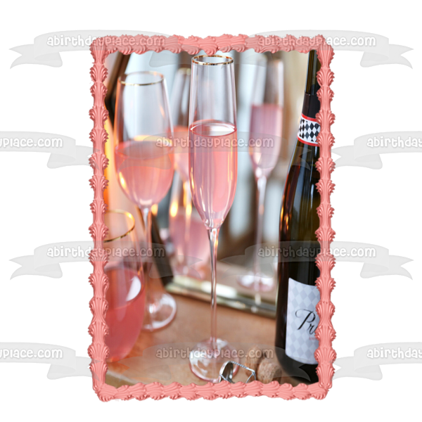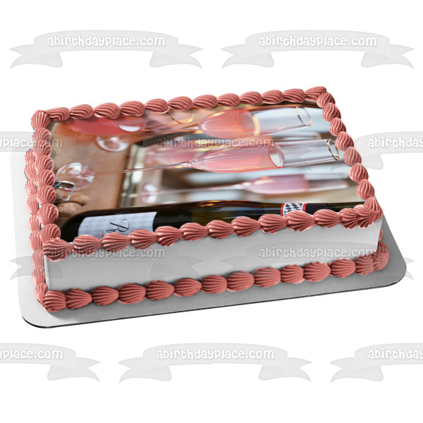 Decorate your Cake with this Pink Champagne themed Edible Cake Topper Image featuring Champagne Glasses and a Bottle!