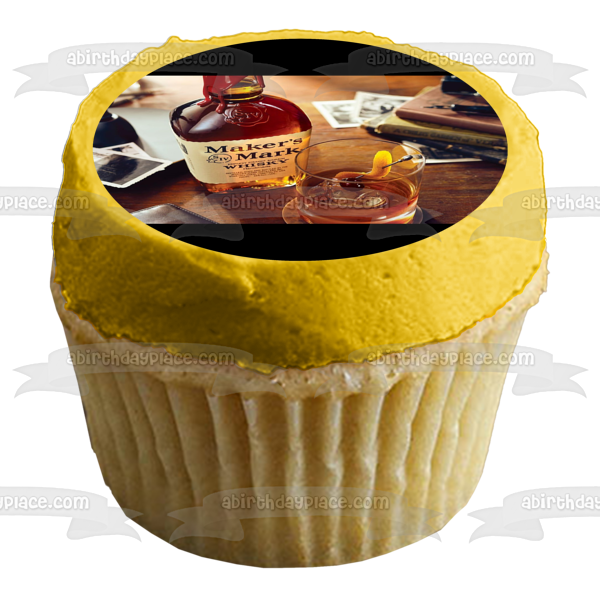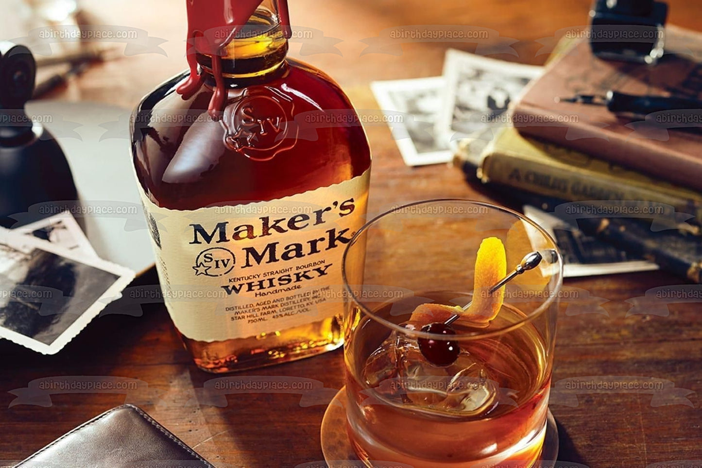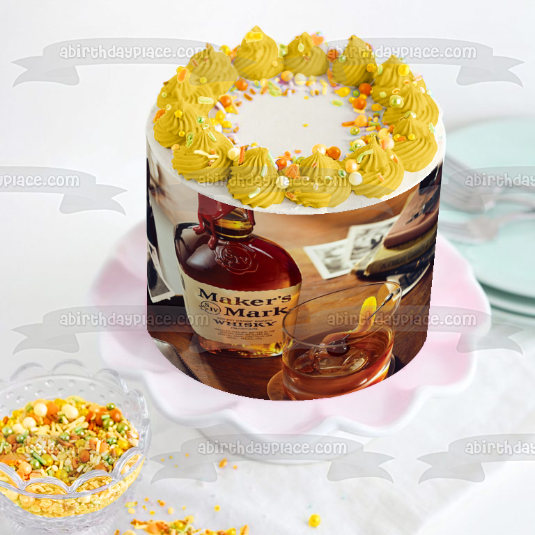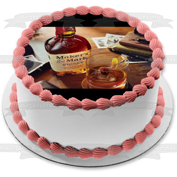 Decorate your Cake with this Maker's Mark Whisky themed Edible Cake Topper Image featuring their Bottle and Glass!