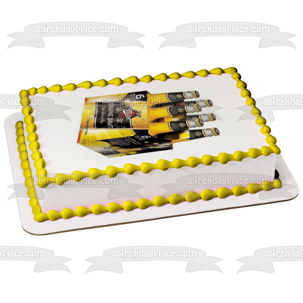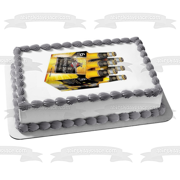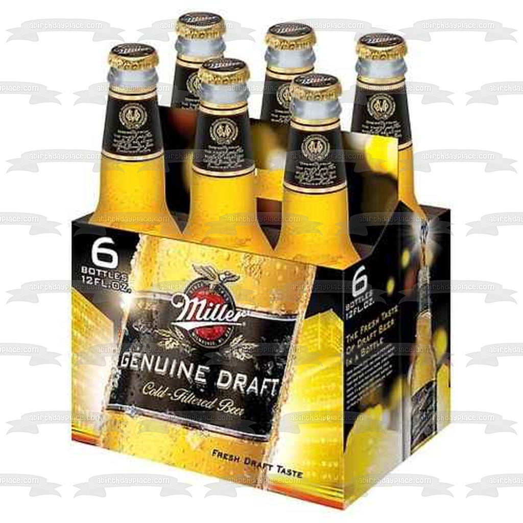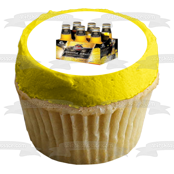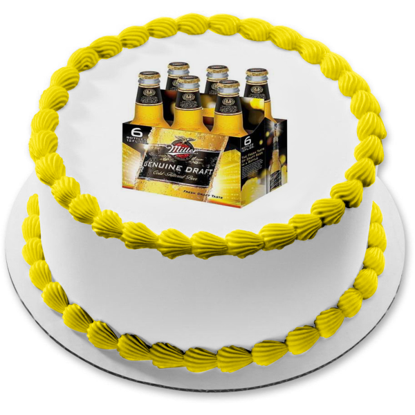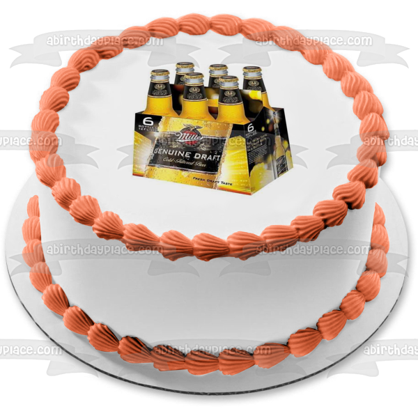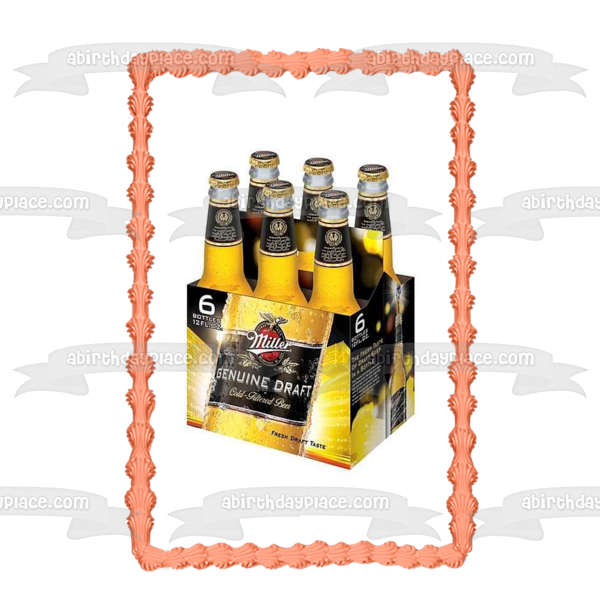 Decorate your Cake with this Miller Genuine Draft Beer themed Edible Cake Topper Image featuring a 6 Pack of Bottles!