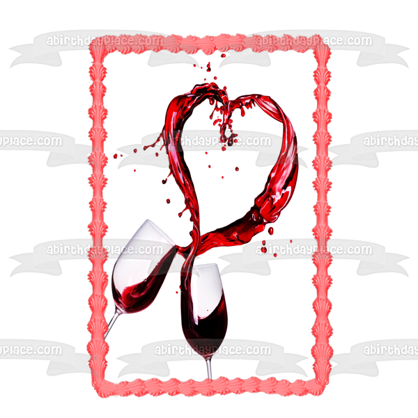 Decorate your Cake with this Red Wine in Glasses themed Edible Cake Topper Image!