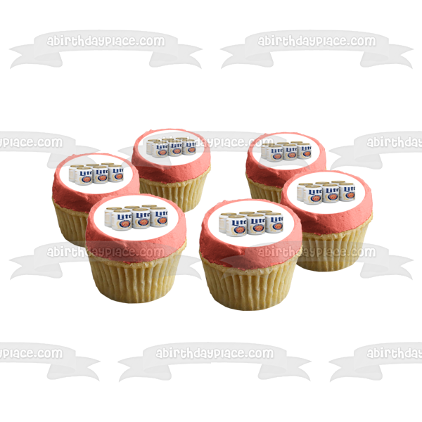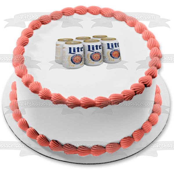 Decorate your Cake with this Miller Lite Beer themed Edible Cake Topper Image featuring a 6 Pack of Cans!